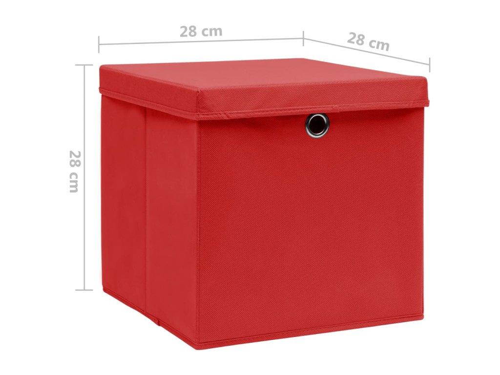 Úložné boxy s víky 4 ks 28 x 28 x 28 cm červené 325220