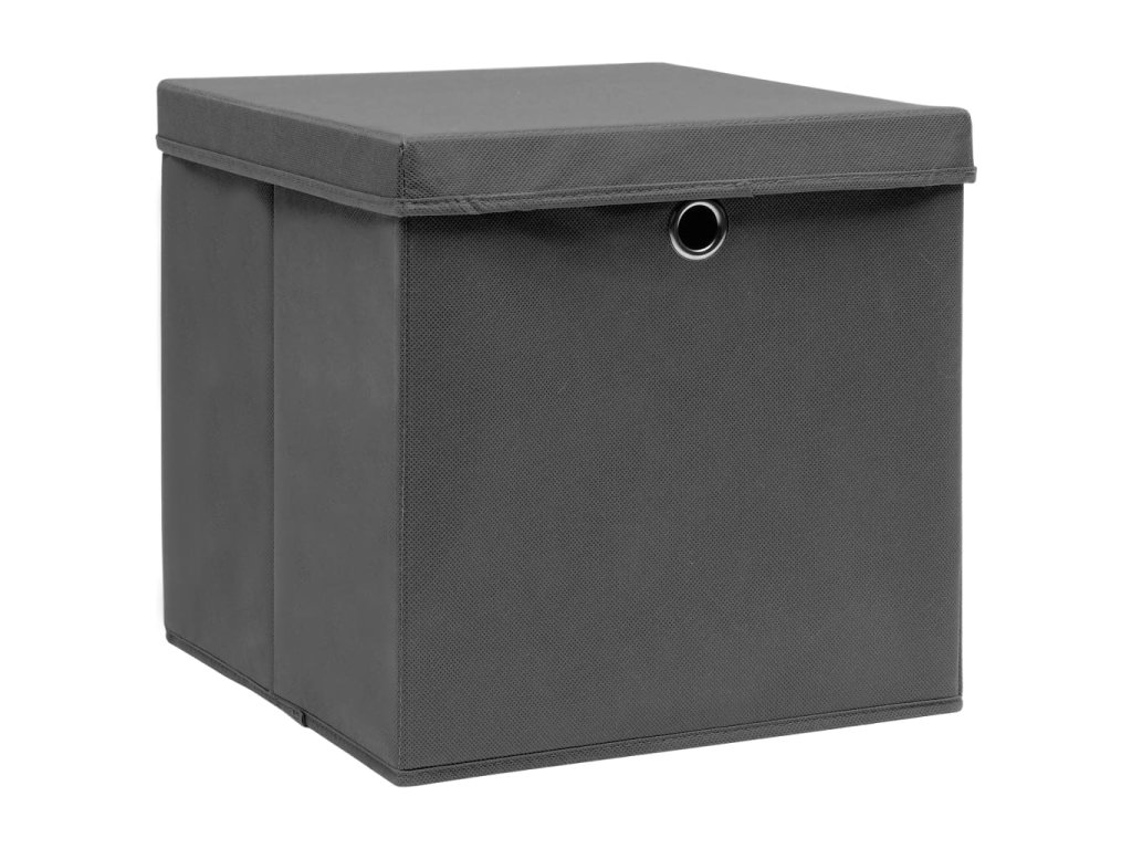 Úložné boxy s víky 4 ks 28 x 28 x 28 cm šedé 325192