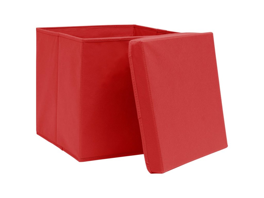 Úložné boxy s víky 4 ks červené 32 x 32 x 32 cm textil 288362