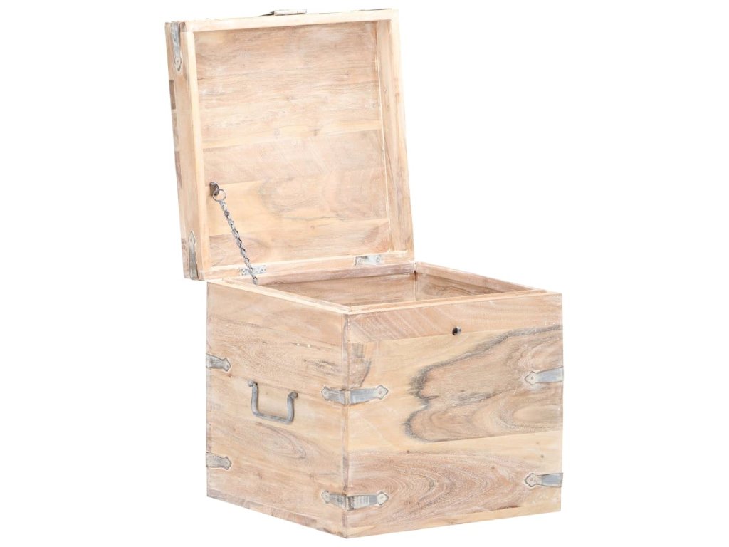 Tato truhla je vyrobená z masivní akácie, tropického tvrdého dřeva, které je stabilní a má dlouhou životnost. Má západku na přední straně a dvě rukojeti pro snadné zvednutí a přenášení. Tento úložný box se stabilní plochou horní deskou lze také použít jako noční stolek. Řemeslné zpracování a krásná dřevěná kresba dává každému kusu nábytku jedinečný a od všech ostatních mírně odlišný charakter.