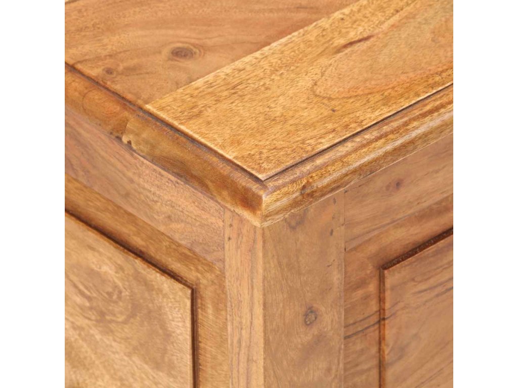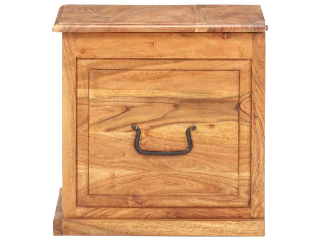 Tato truhla je vyrobená z masivní akácie, tropického tvrdého dřeva, které je stabilní a má dlouhou životnost. Má dvě rukojeti pro snadné zvednutí a přenášení. Tento úložný box se stabilní plochou horní deskou lze také používat jako noční stolek. Řemeslné zpracování a krásná dřevěná kresba dává každému kusu nábytku jedinečný a od všech ostatních mírně odlišný charakter.