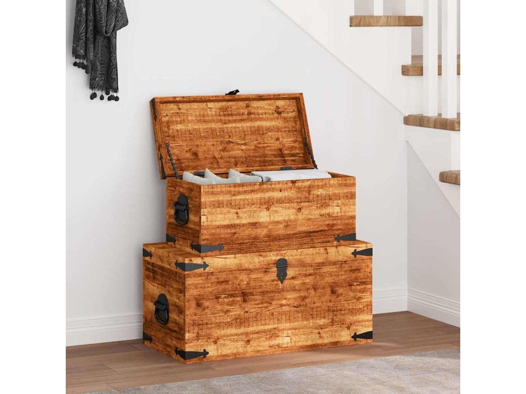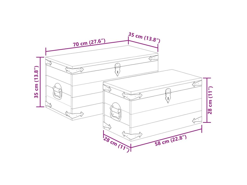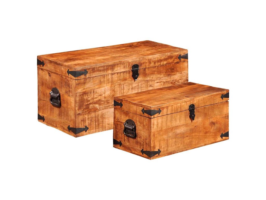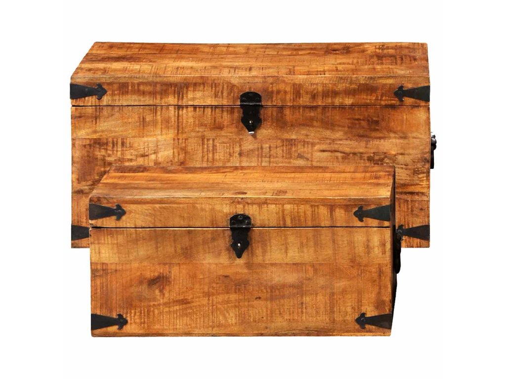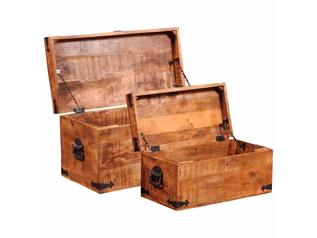 Tento set dvou truhel z hrubého mangovníkového dřeva, nadčasový doplněk do vaší domácnosti, vám poskytne spoustu úložného prostoru, a pomůže vám tak s uspořádáním vašich věcí.