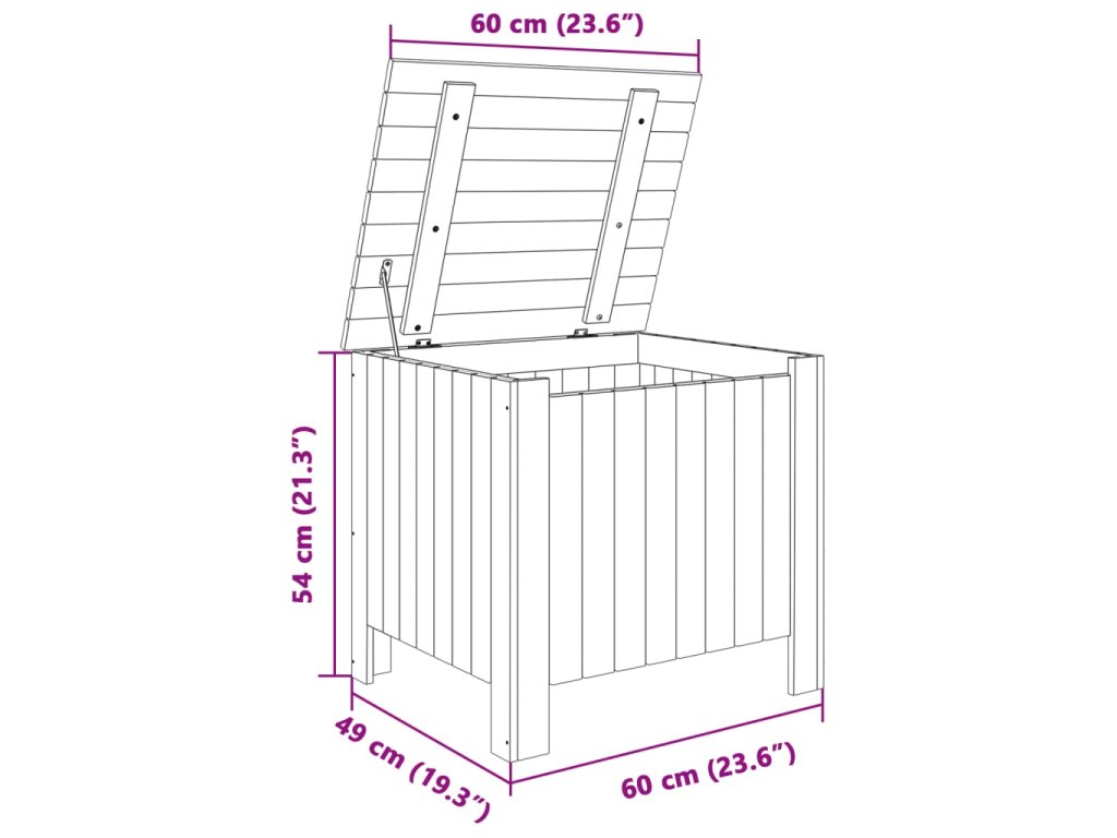 - Lamelové provedení: Lamelový design umožňuje dobré větrání věcí uvnitř úložné truhly.