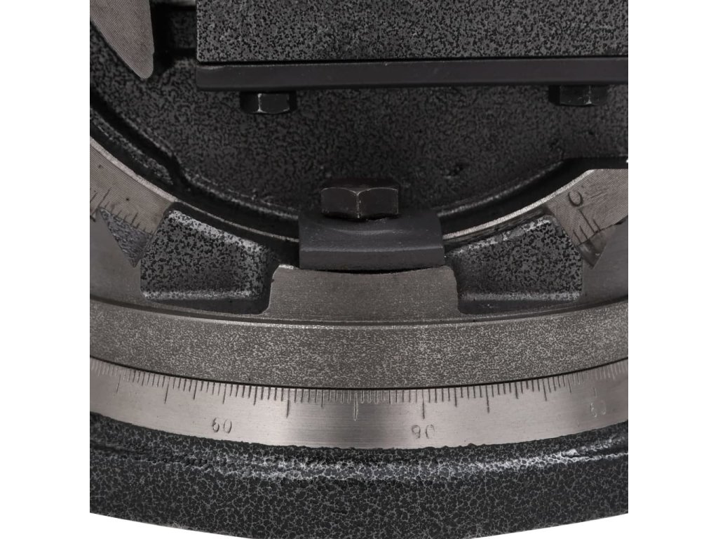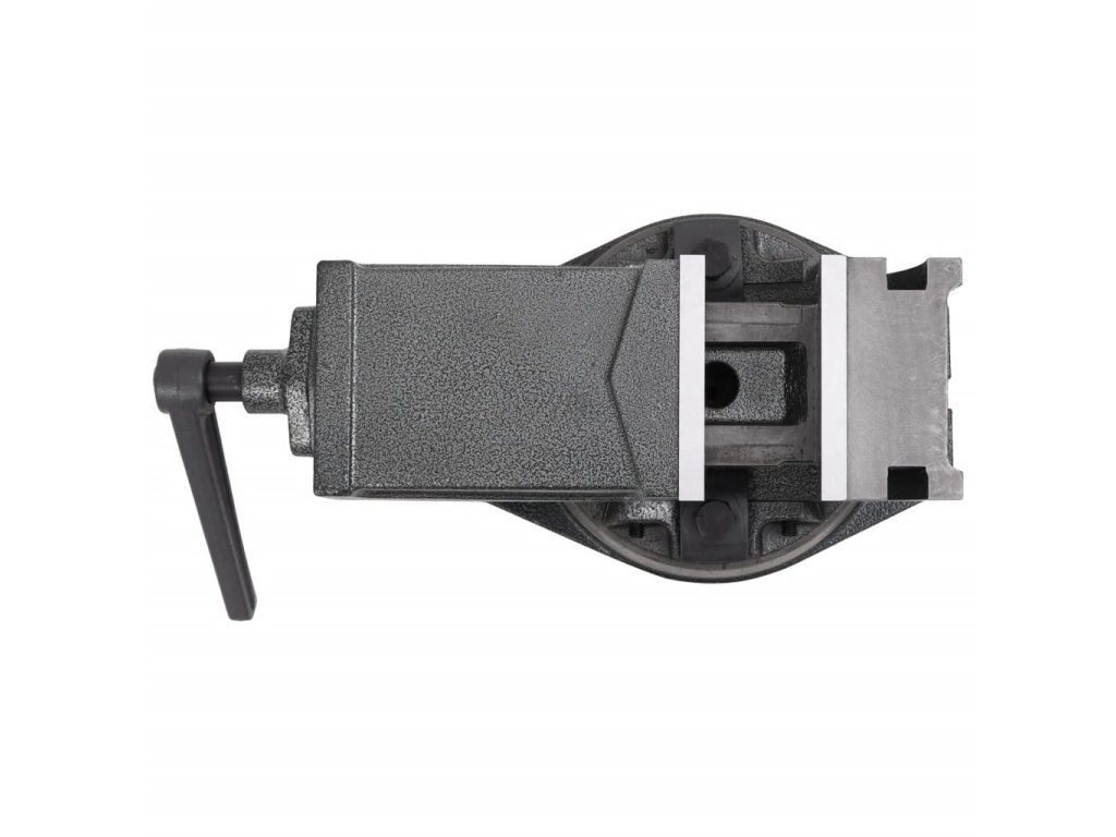 Masivní šroub vám umožní přizpůsobit rozpětí vašemu obrobku na míru. Čelisti jsou kalené, a proto mohou vyhovět i potřebám náročného vrtání a frézování. Dvojosé uchycení a jemně dělená stupnice umožňují sklon 0–90°, který je možné zajistit upínací pákou.