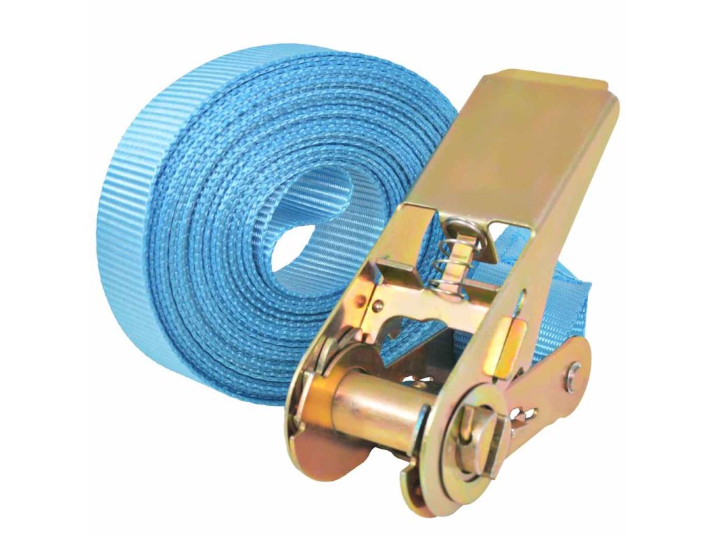 Odolné a pevné upínací popruhy jsou vyrobené z vysoce kvalitního polyesteru a kapacita nakládky každého z nich je 0,8 tun. Upínací popruhy byly vyrobeny v souladu s Evropskou normou EN-12195-2. Jsou také vybavené ráčnami s rychloupínacími západkami pro maximální utažení nákladu při transportu. Ovládání ráčen je velmi jednoduché.
