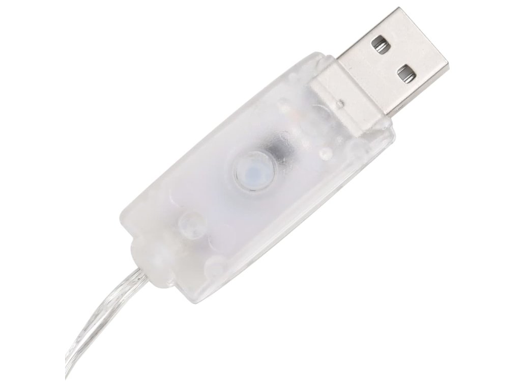 Poznámka: Dodaný USB konektor není voděodolný a je třeba ho chránit před vodou a vlhkostí. Přesto můžete používat světelný řetěz venku, protože 5m prodlužovací kabel a samotný produkt jsou voděodolné. Produkt je vybaven USB konektorem, ale certifikovaný napájecí zdroj 5V USB není součástí dodávky.