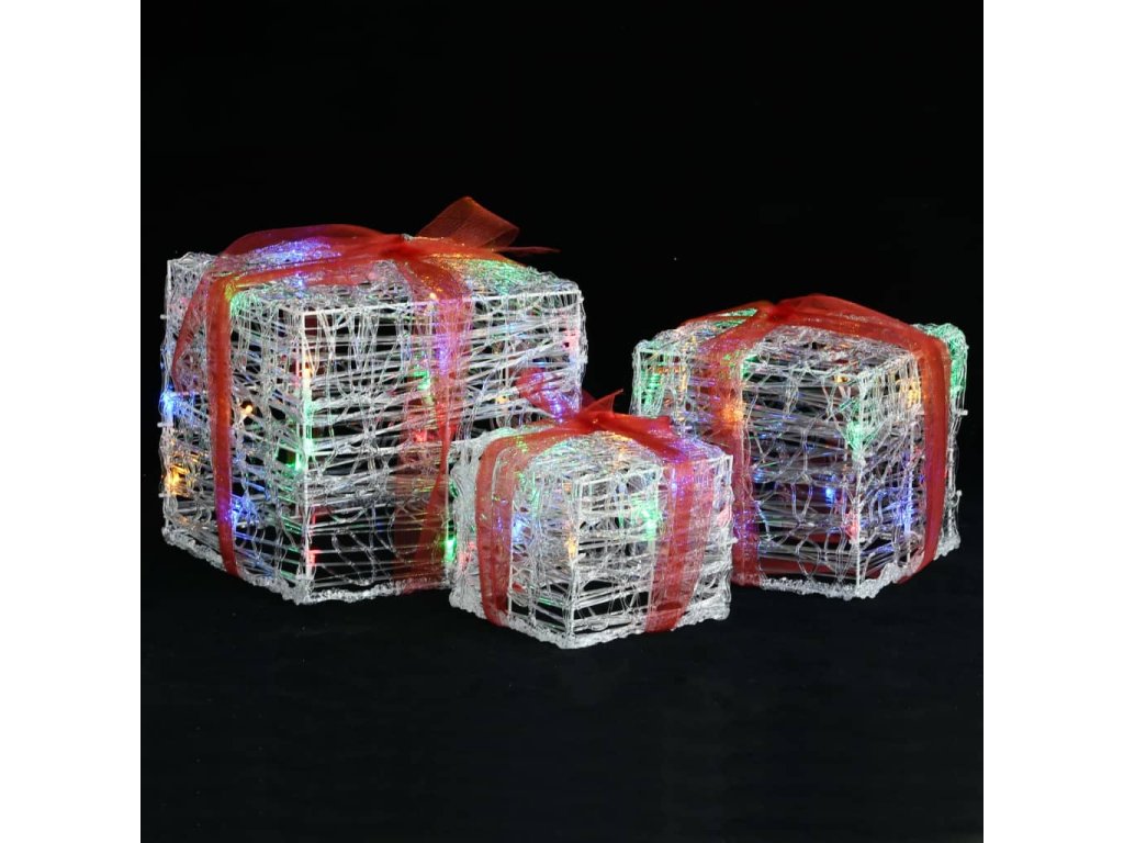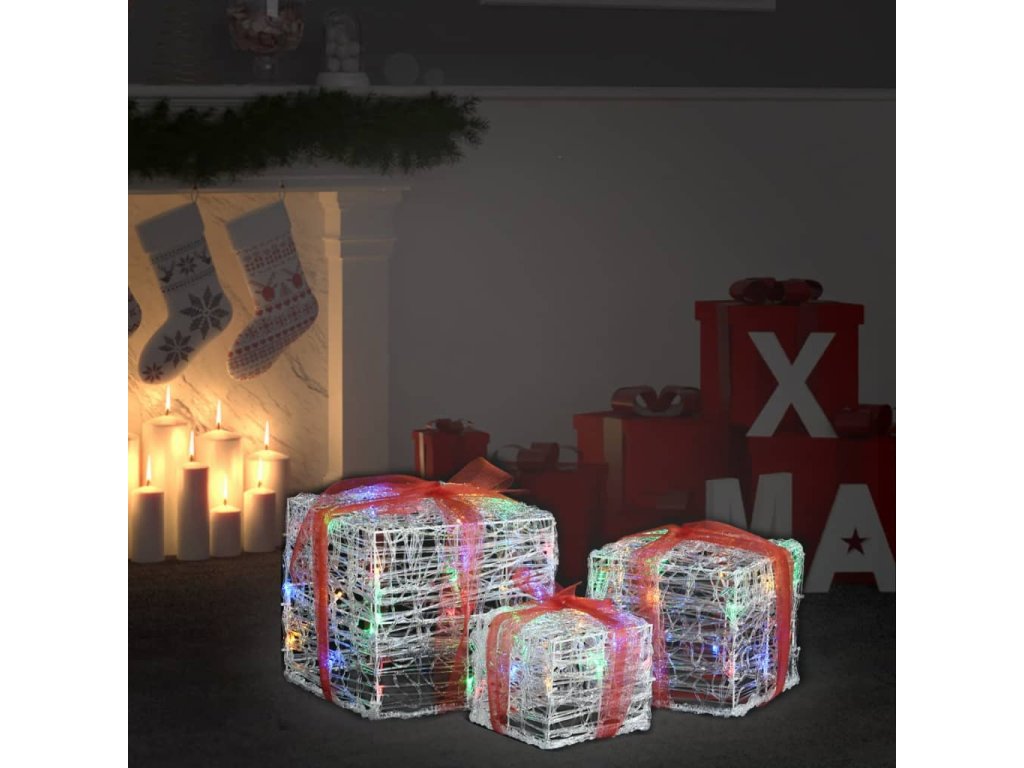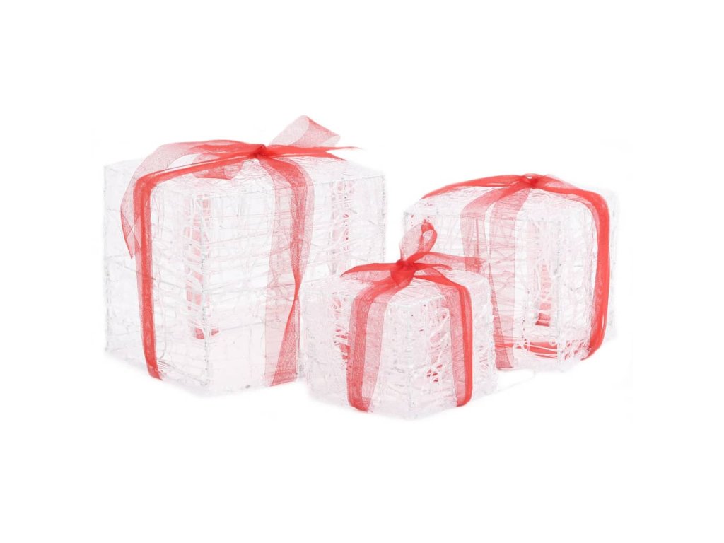 Dekorativní akrylové vánoční dárky 3 ks barevné 328793