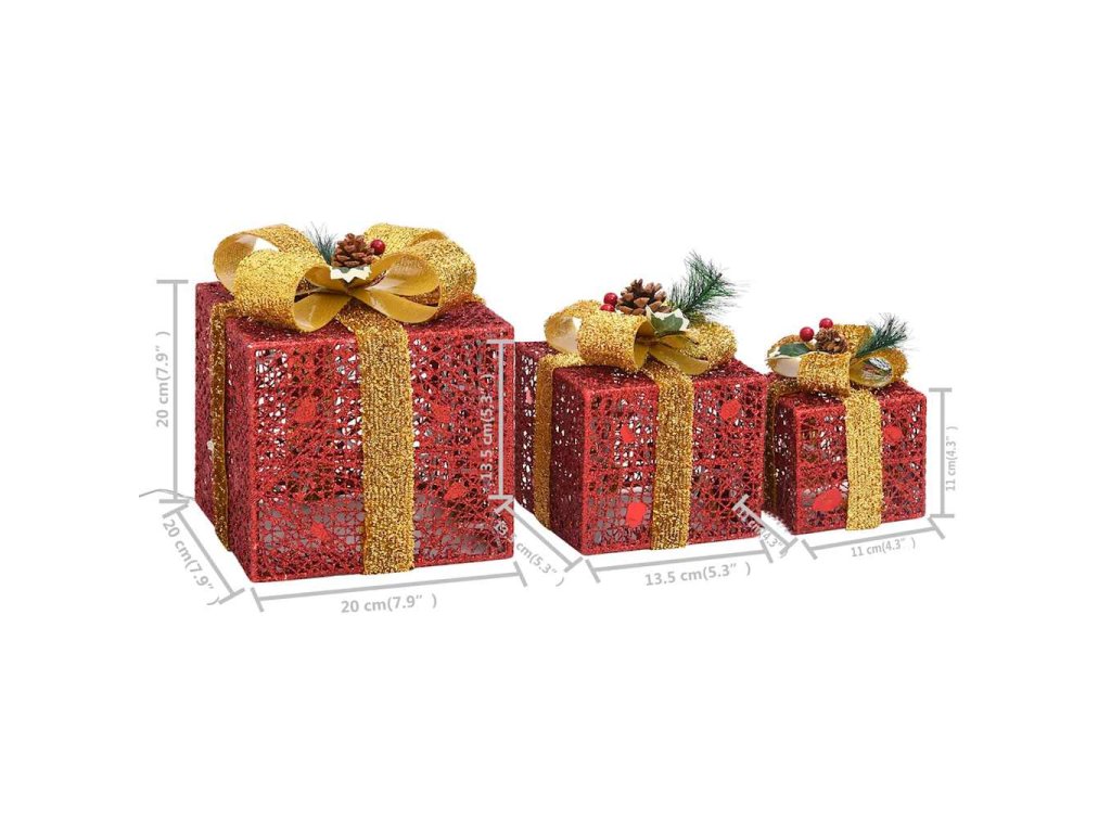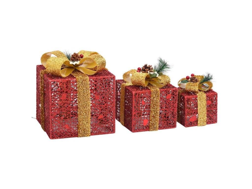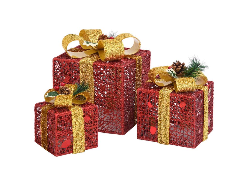 Dekorativní vánoční dárky 3 ks červené dovnitř i ven 329767