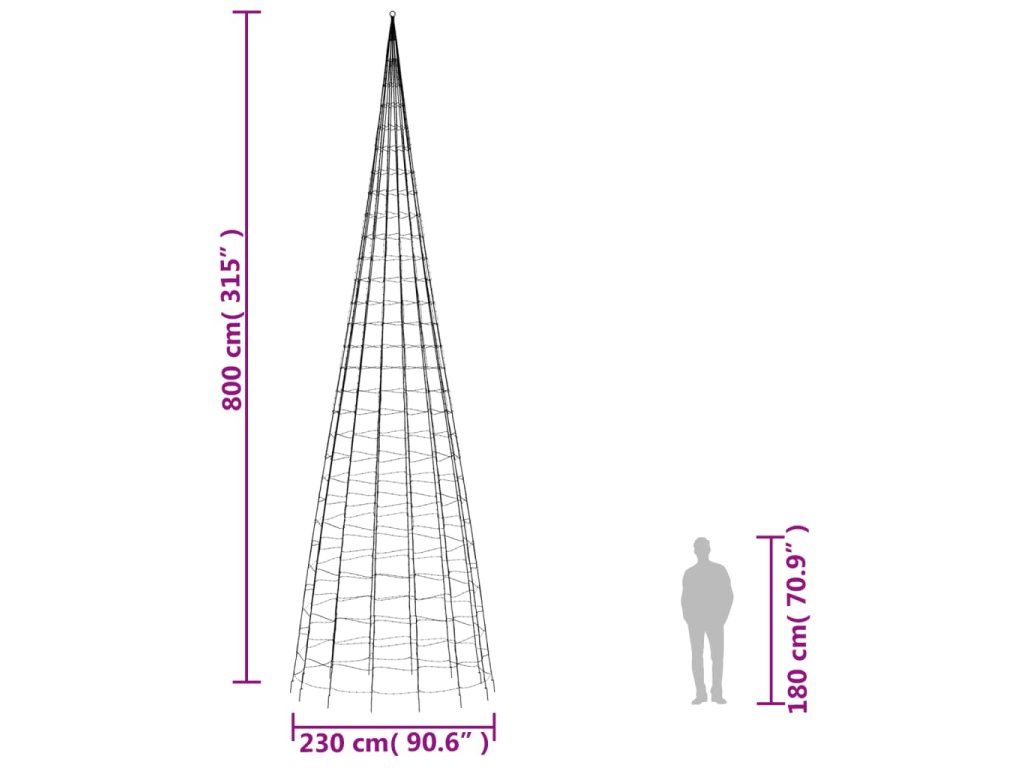 LED vánoční stromek na stožár 3000 teplých bílých LED 800 cm 358120