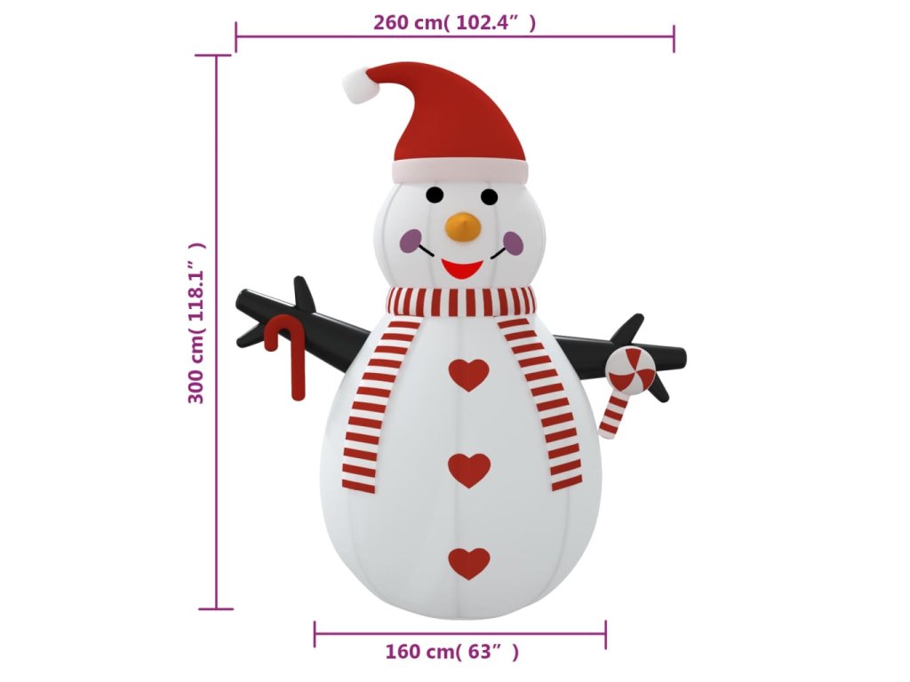 Nafukovací sněhulák s LED diodami 300 cm 345375