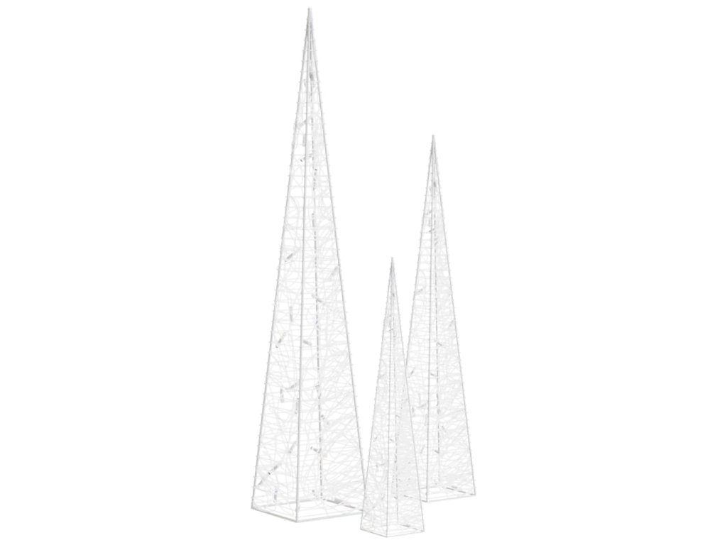 Sada obsahuje 3 světelné kužely s různou výškou. Tělo dekorativního světelného kužele je vyrobené z akrylu s luxusním, ledově lesklým vzhledem, který rozzáří celé své okolí. Je vybavené energeticky úspornými LED diodami a zajišťuje jasné a výkonné osvětlení. Má 8 různých světelných efektů: kombinovaný režim, svícení ve vlnách, sekvenční režim, pomalá záře, blikání, pomalé blednutí, mihotání a nepřetržité svícení. Tato sada krásných vánočních světelných kuželů a přiložené pouzdro na baterie jsou vodotěsné, takže výrobek je vhodný pro vnitřní i venkovní použití.