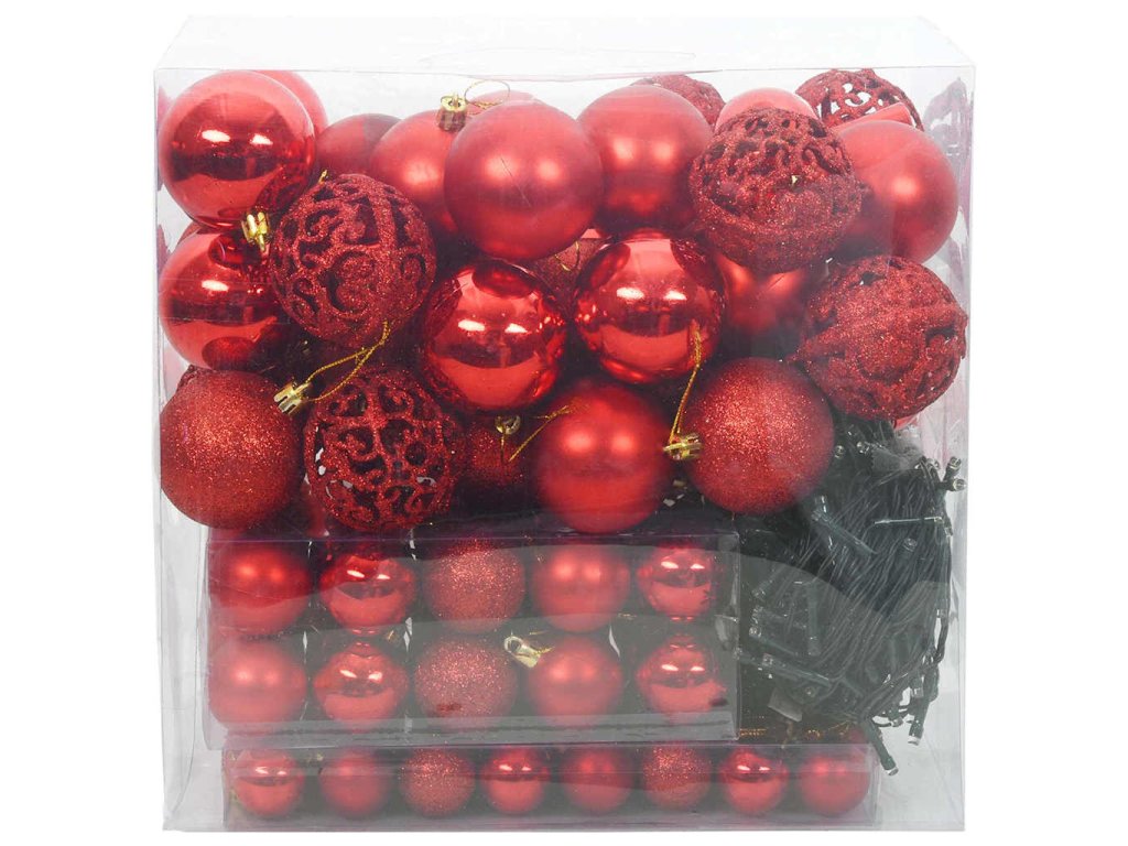 Sada vánočních ozdob s 300 LED diodami 120 pcs Červená Plast 42018826