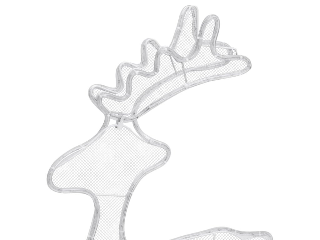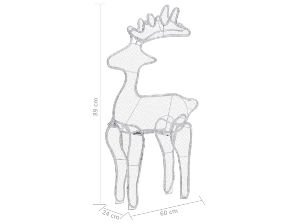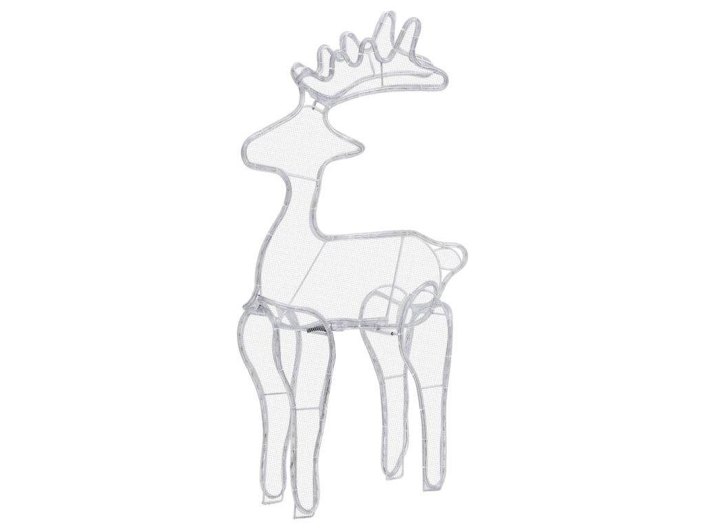 Tato sobí dekorace je vyrobená z PVC a ocelového rámu, který po celou dobu svátků bude vzdorovat povětrnostním vlivům. Dekorace je osvícená 360 LED světly, která jsou energeticky úsporná, s dlouhou výdrží a životností. Tento osvětlený sob má 1,5 m dlouhý kabel s IP44 adaptérem. Lze ho používat v interiéru i exteriéru.