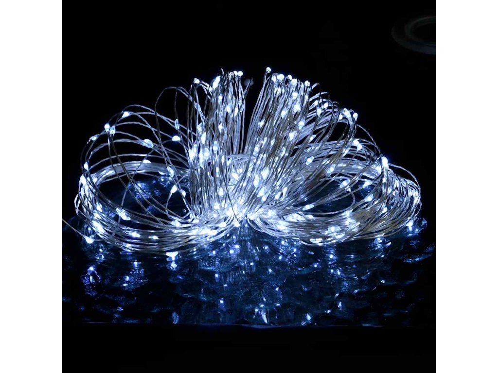 Řetěz je vybavený 300 LED diodami se studeným bílým světlem. Má 8 různých světelných efektů; kombinovaný režim, svícení ve vlnách, sekvenční režim, pomalá záře, blikání, pomalé blednutí, mihotání a nepřetržité svícení. Pomocí dálkového ovladače (baterie není součástí balení. Použijte knoflíkovou baterii CR2025) můžete světlo snadno ovládat. Světelný řetěz s měděným drátem lze snadno ohnout do libovolného tvaru. Je to skvělé dekorativní osvětlení vnitřních i venkovních prostor, např. zahrad, plotu, branky, vánočních stromků atd.