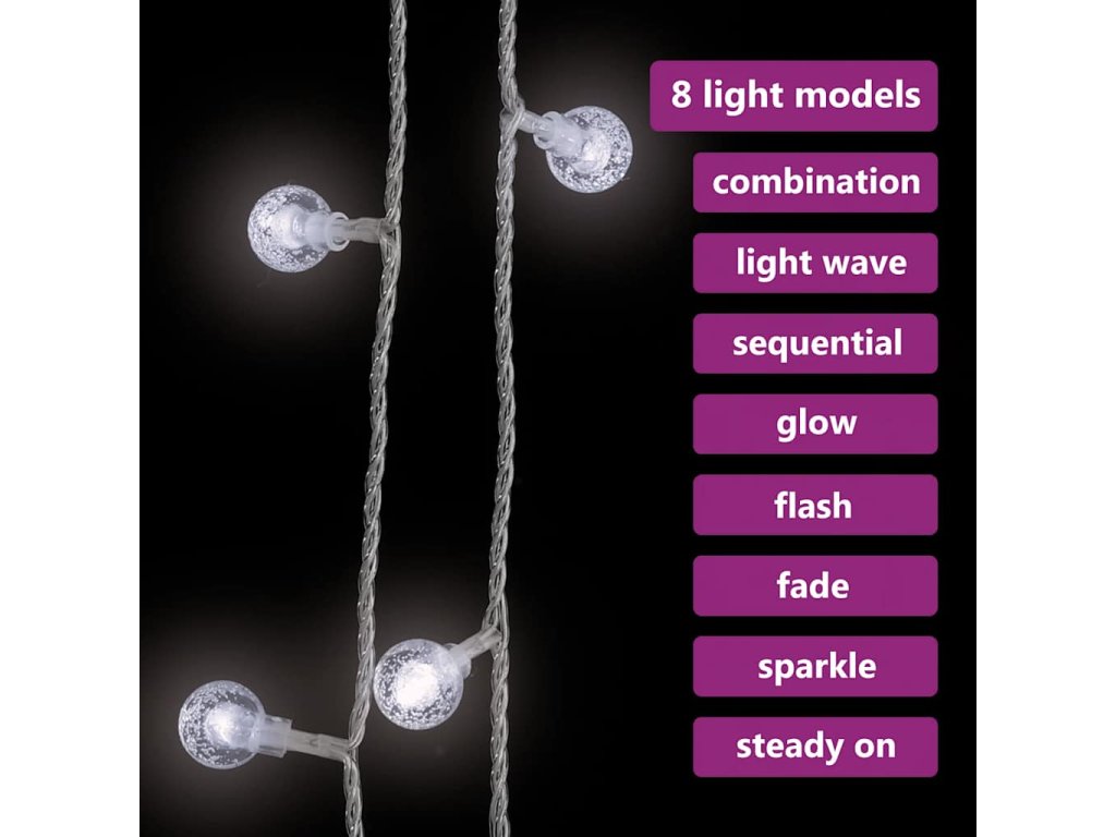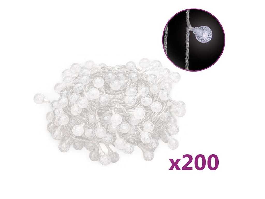 Světelný řetěz kulaté žárovky 20m 200 LED studený bílý 8 funkcí 328811