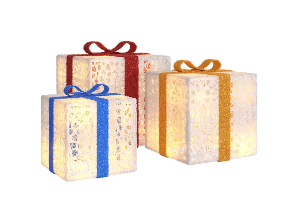 Svítící vánoční dárky 3 ks 64 teple bílých LED 356244