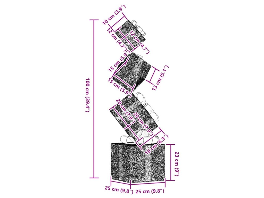 - Rozměry dárkové krabičky (XL): 25 x 25 x 23 cm (D x Š x V)