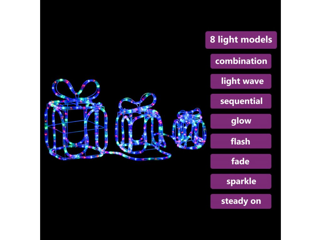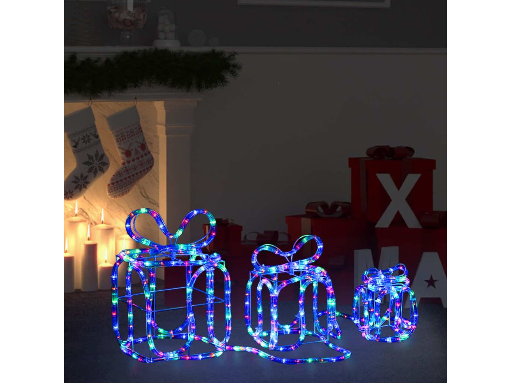 Tyto 3D dárkové krabičky jsou vybavené vícebarevnými LED světly, které vydávají měkkou záři, a proto jsou perfektní dekorací uvnitř i ven.