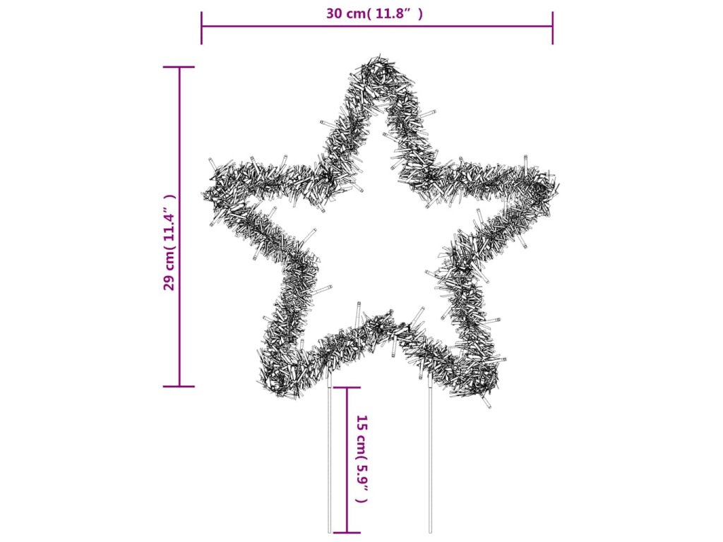 - Rozměry vánočního světla (bez zemních hrotů): 30 x 29 cm (Š x V)