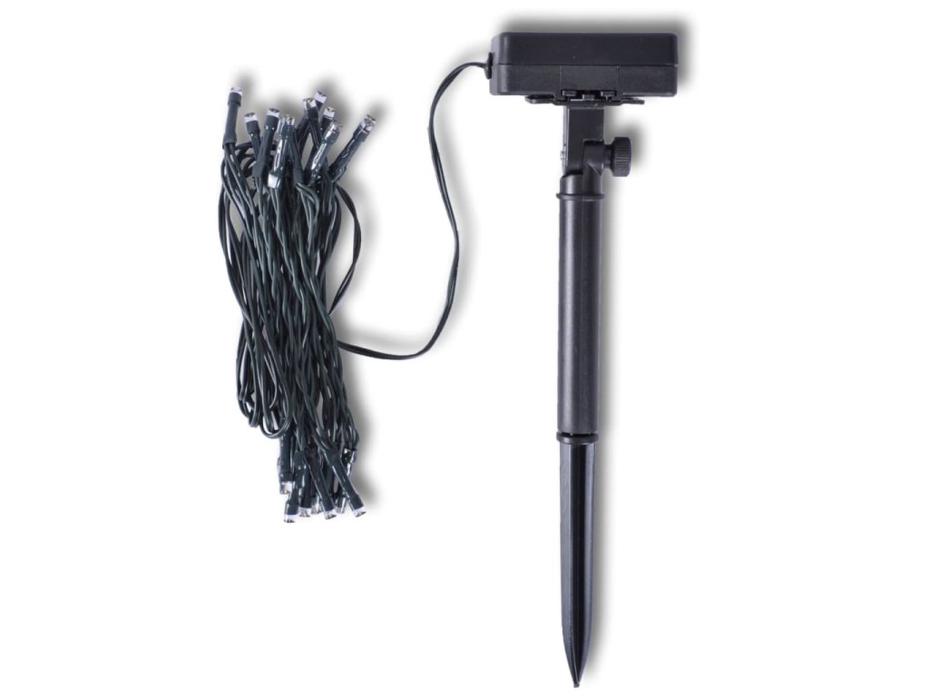 Solární světelný řetěz měří 3,8 m a má 24 LED žárovek. Během dne solární panely uchovávají solární energii v dobíjecí baterii. V noci se automaticky rozstvítí za pomoci nastřádané energie.
