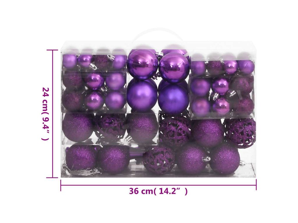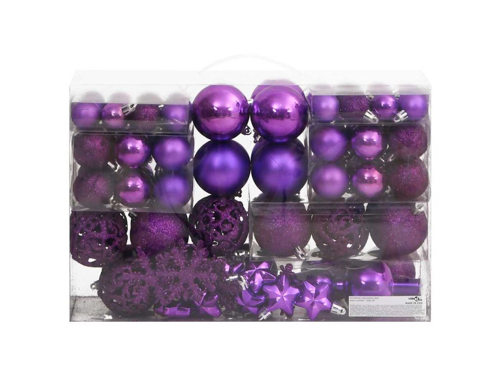 111dílná sada vánočních ozdob fialová polystyren 356119