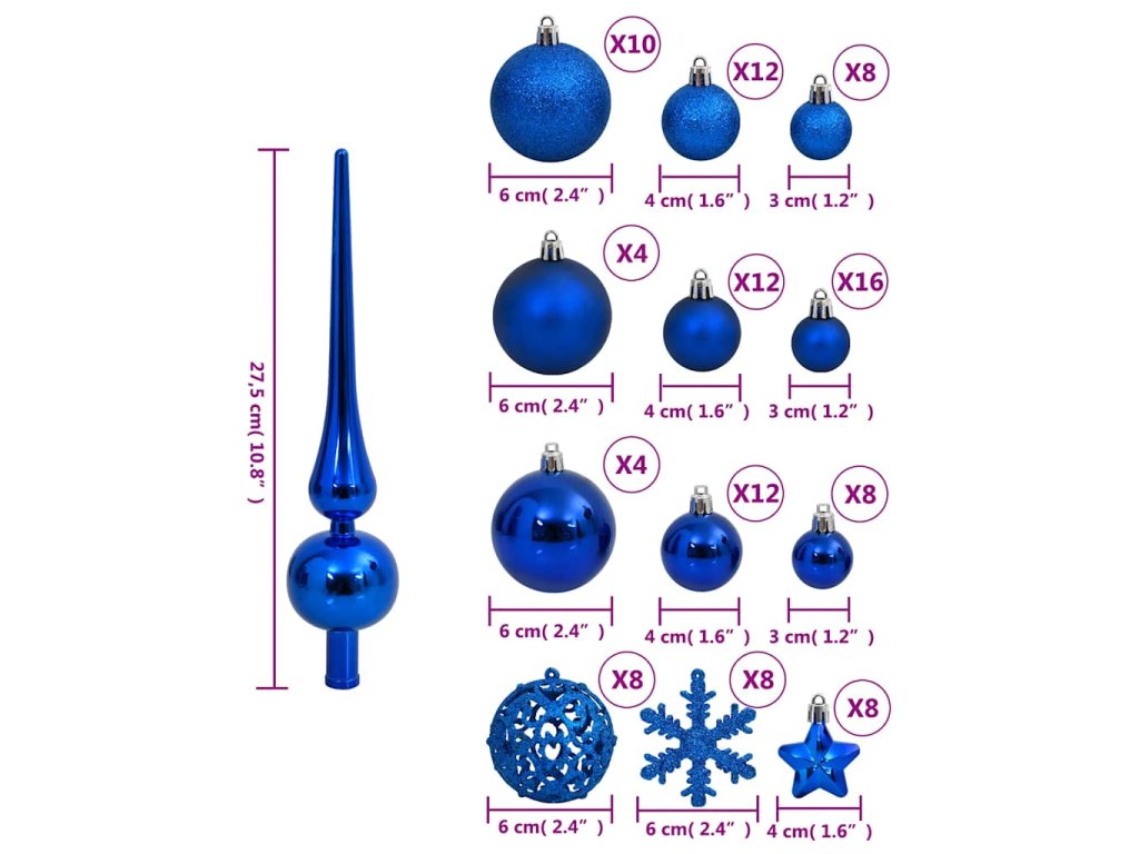 111dílná sada vánočních ozdob modrá polystyren 356118