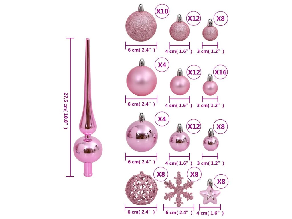 111dílná sada vánočních ozdob růžová polystyren 356117