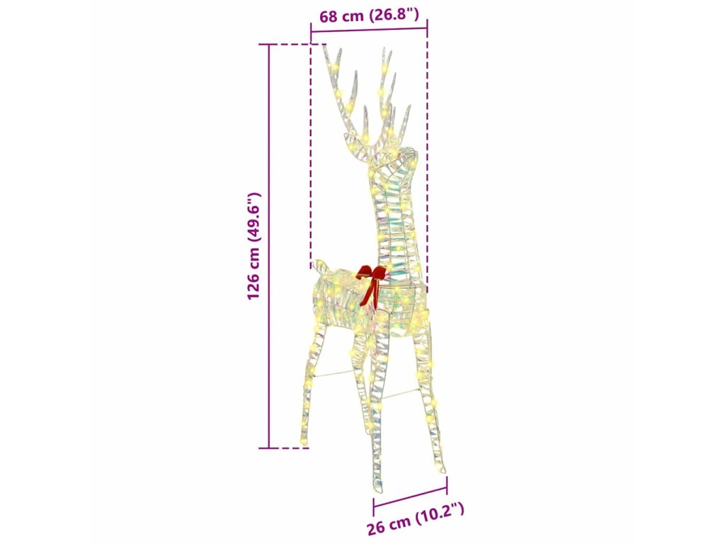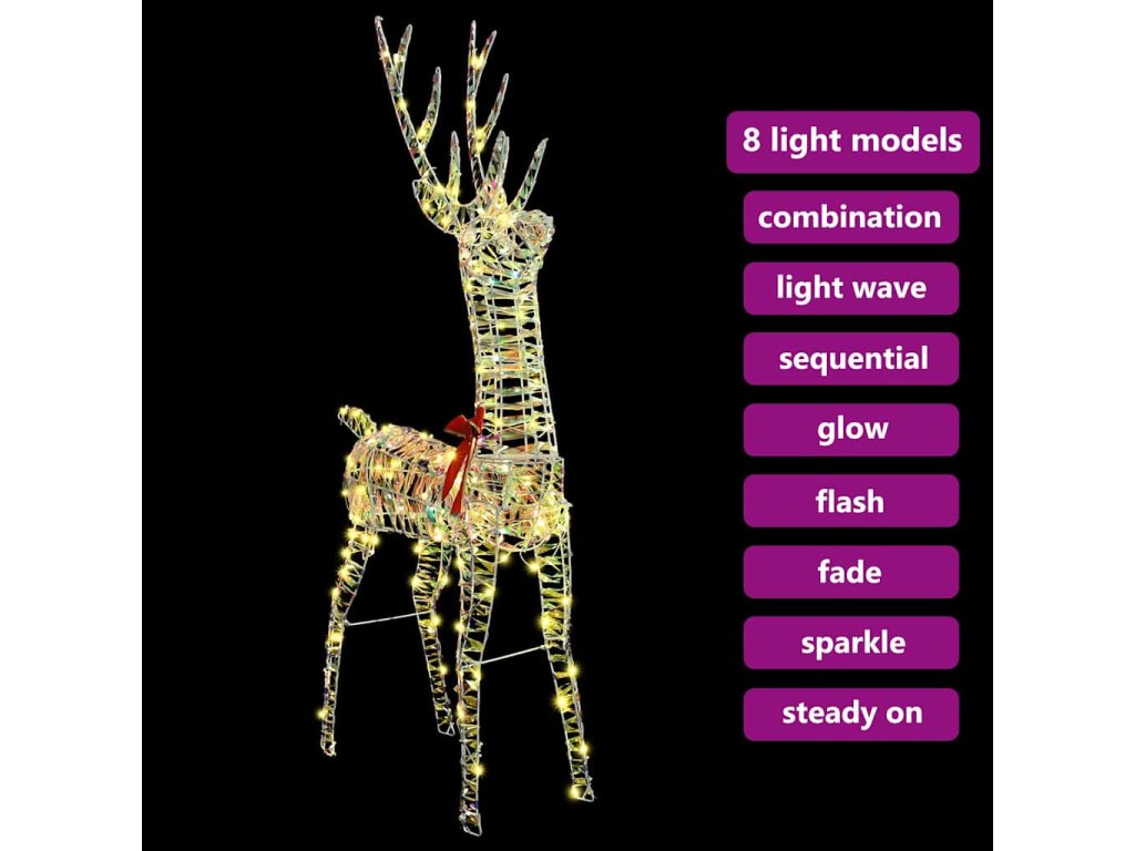 - Teplé bílé LED světlo Integrovaná LED světla vydávají jemné, teplé bílé světlo, které vyvolává vzpomínky na útulné Vánoce. Tato světla jsou úsporná a navržená na dlouhou životnost, takže sob bude po celé sváteční období zářit a přidá kouzlo a útulnost do každého prostoru.