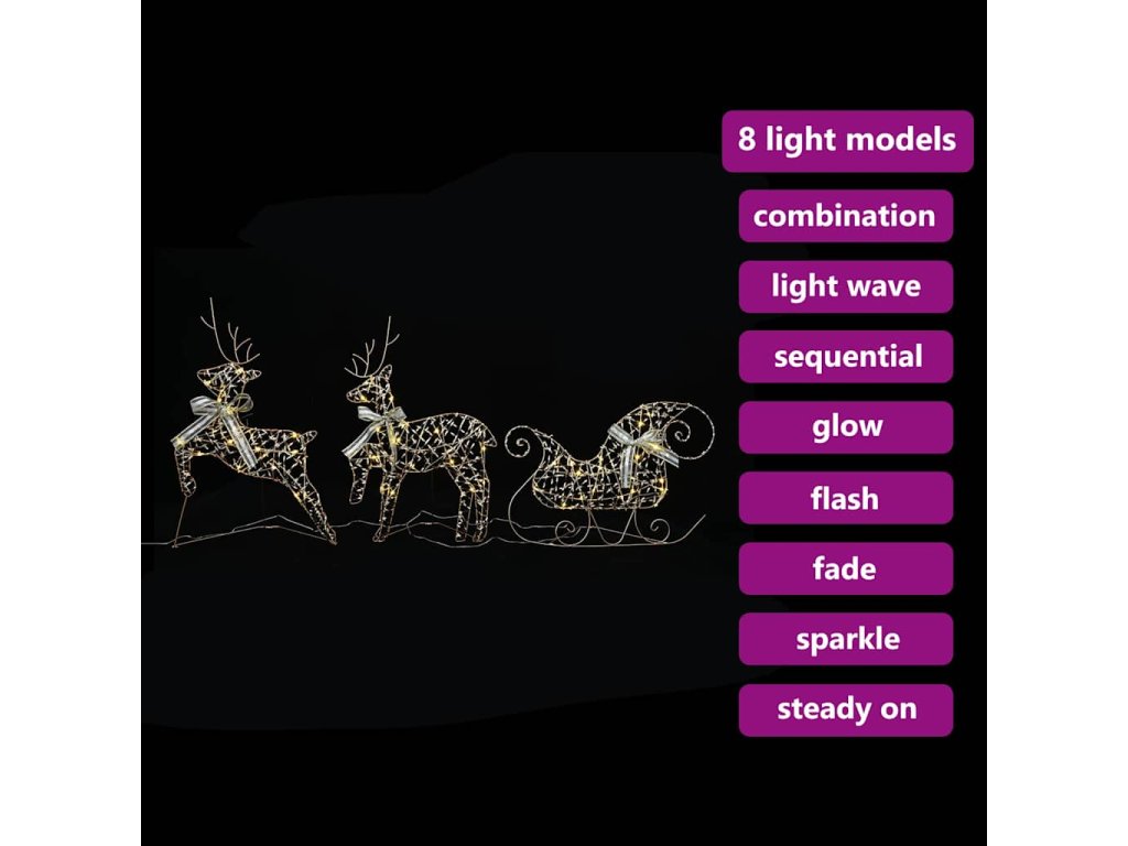 Tato vánoční dekorace soba představuje nadčasové kouzlo svátečních tradic. Můžete ji použít jak uvnitř, tak venku a snadno oživuje prostor svou elegantní sváteční atmosférou. Zaměření na klasické designové prvky ukazuje skvělou uměleckou práci, která se snoubí s moderními LED akcenty. Je ideální pro ty, kdo si cení umění vánočních ozdob, a poskytuje teplé, útulné světlo, které skvěle doplňuje útulnou sváteční atmosféru.