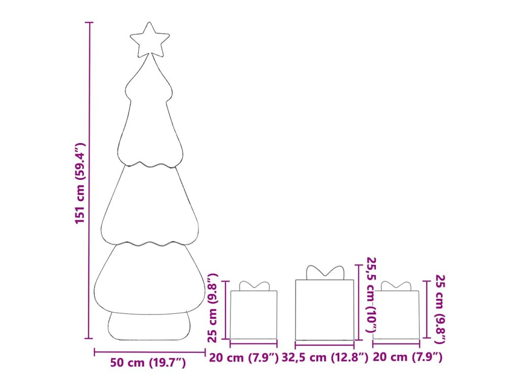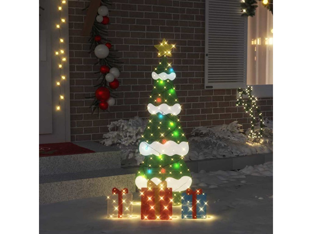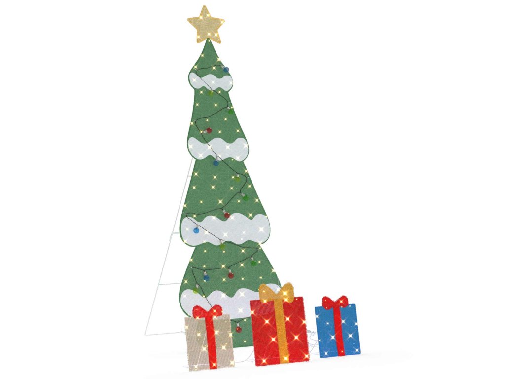 Tento vánoční stromeček s osvětlením a třemi dárkovými krabicemi dodává sváteční atmosféru kombinací moderního stylu a tradičního vánočního kouzla. Ideální na obývák, zahradu nebo terasu, přináší radost a pohodu díky jemným LED světly a krásným ozdobám, perfektní pro rodinné oslavy a setkání.