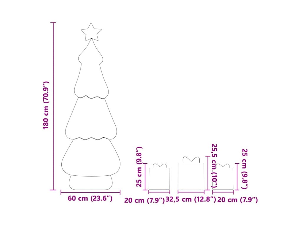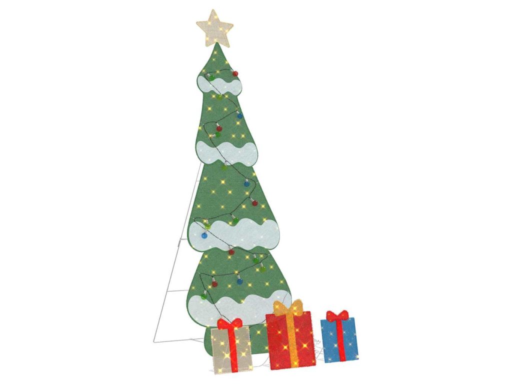 Tento vánoční stromeček s osvětlením a třemi dárkovými krabicemi dodává sváteční atmosféru kombinací moderního stylu a tradičního vánočního kouzla. Ideální na obývák, zahradu nebo terasu, přináší radost a pohodu díky jemným LED světly a krásným ozdobám, perfektní pro rodinné oslavy a setkání.