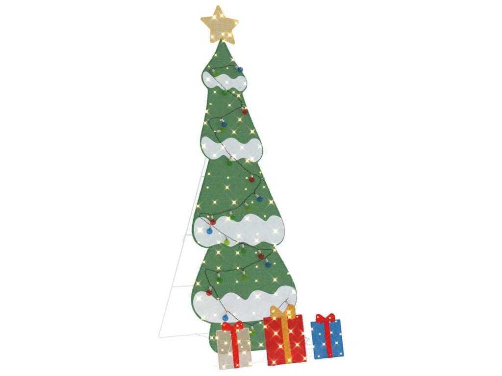 Tento vánoční stromeček s osvětlením a třemi dárkovými krabicemi dodává sváteční atmosféru kombinací moderního stylu a tradičního vánočního kouzla. Ideální na obývák, zahradu nebo terasu, přináší radost a pohodu díky jemným LED světly a krásným ozdobám, perfektní pro rodinné oslavy a setkání.