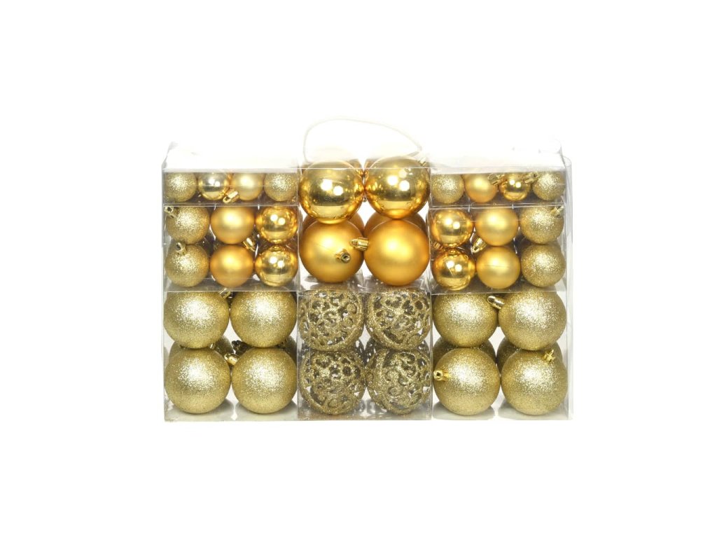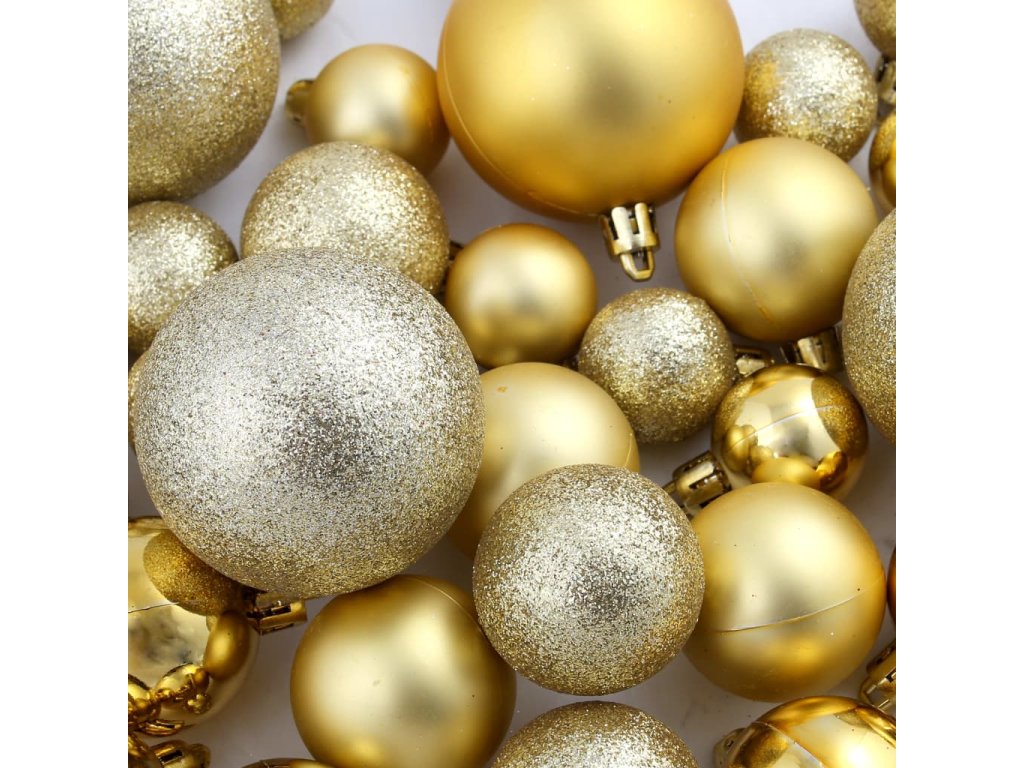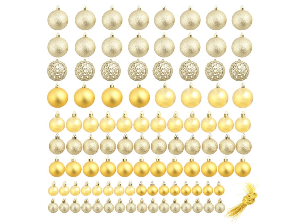 Sada vánočních baněk 100 kusů 3/4/6 cm zlatá 245708