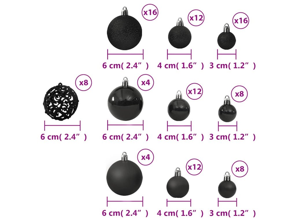 Tyto vánoční baňky mají tři různé velikosti a svým nápadným designem krásně oživí váš vánoční stromeček. Nablýskané baňky vypadají jako opravdové sklo, ve skutečnosti jsou však vyrobeny z plastu — nemusíte se tedy bát, že by se rozbily. Tyto baňky jsou navíc velice lehké, takže vám se zdobením vánočního stromečku mohou pomoci i vaše děti. Dodává se také s krabicí pro snadné skladování.