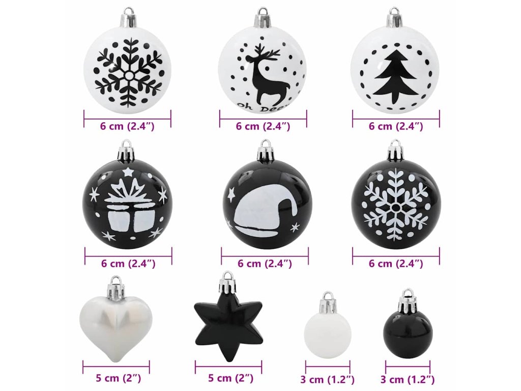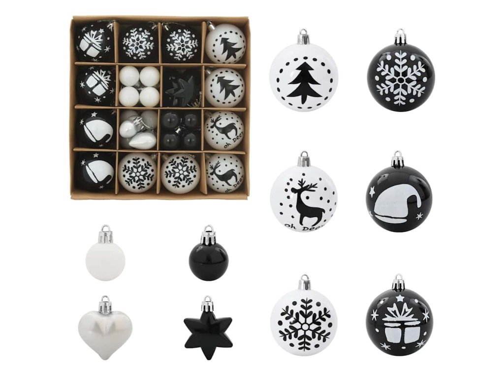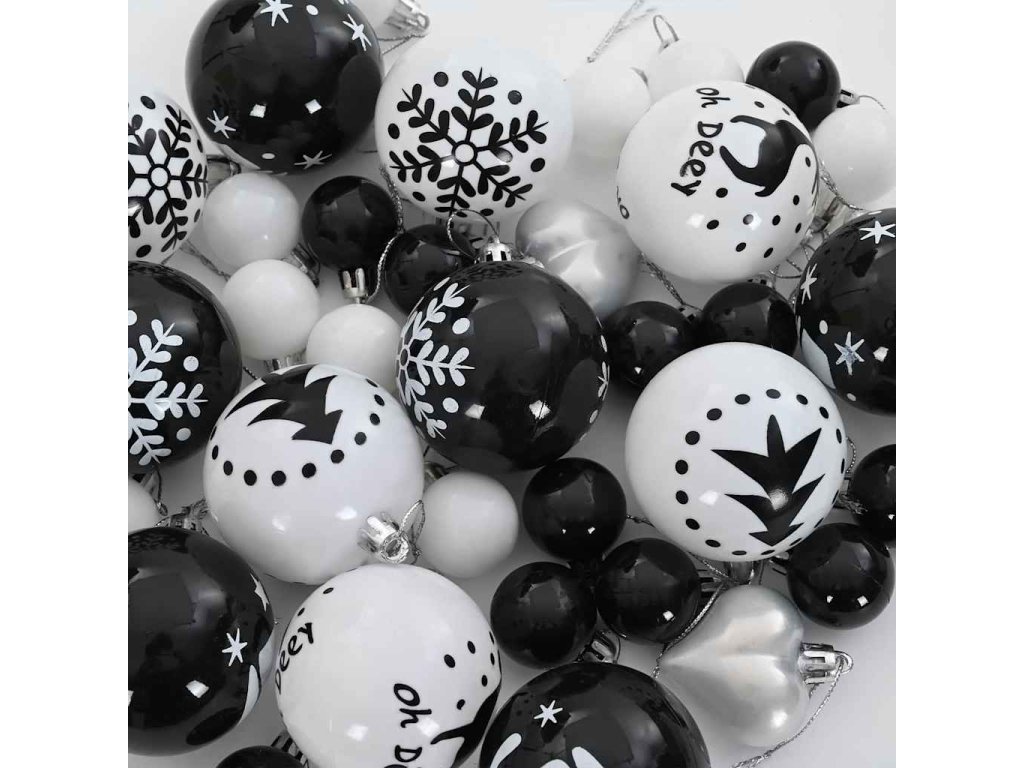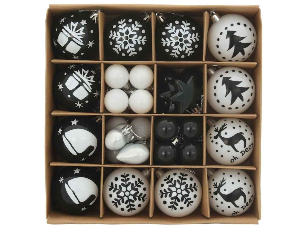 Sada vánočních ozdob 40 pcs Černá a bílá Plast 42018849