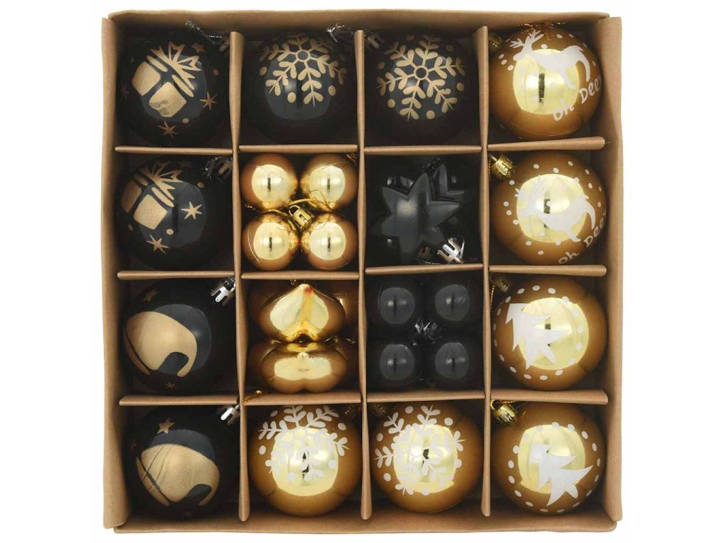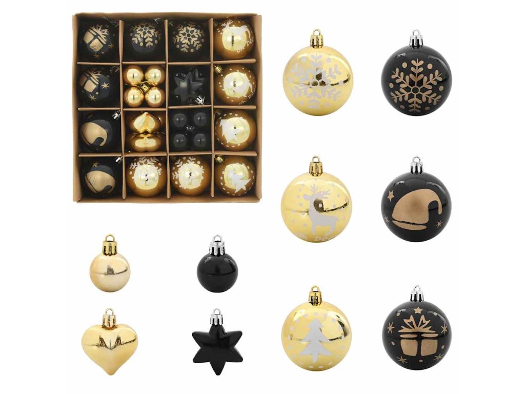 Sada vánočních ozdob 40 pcs Černá a zlatá Plast 42018848