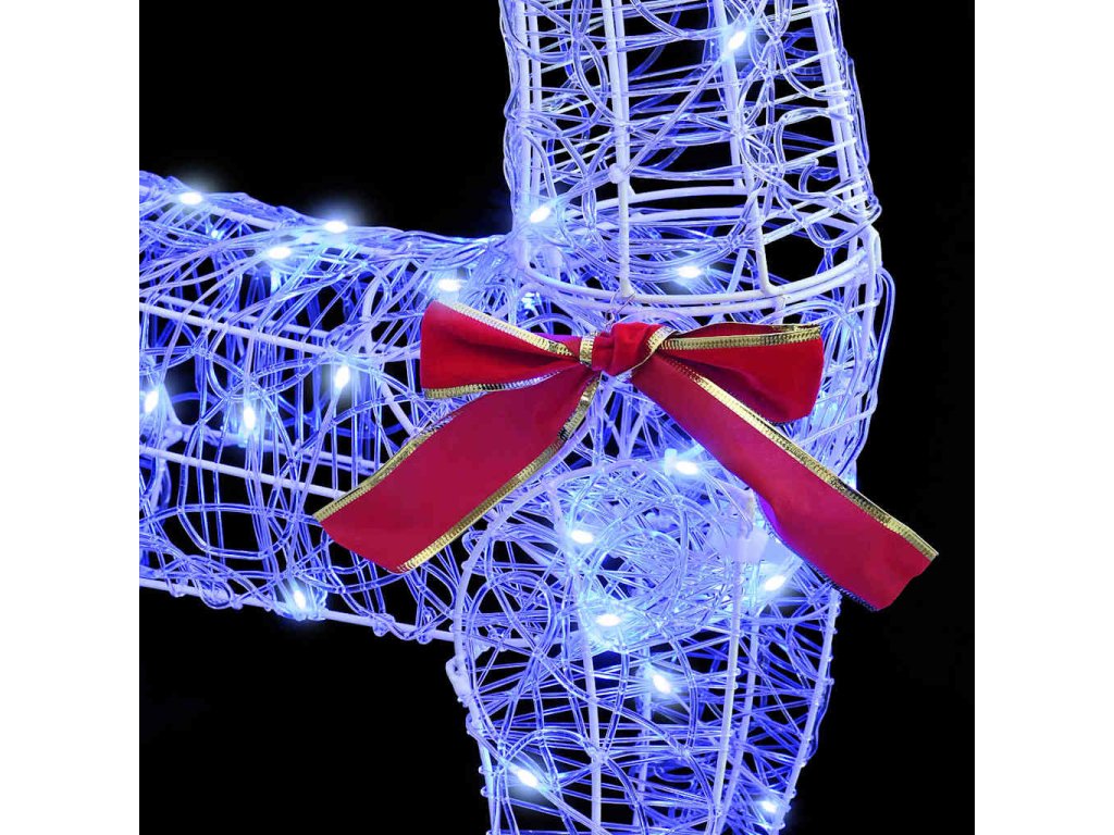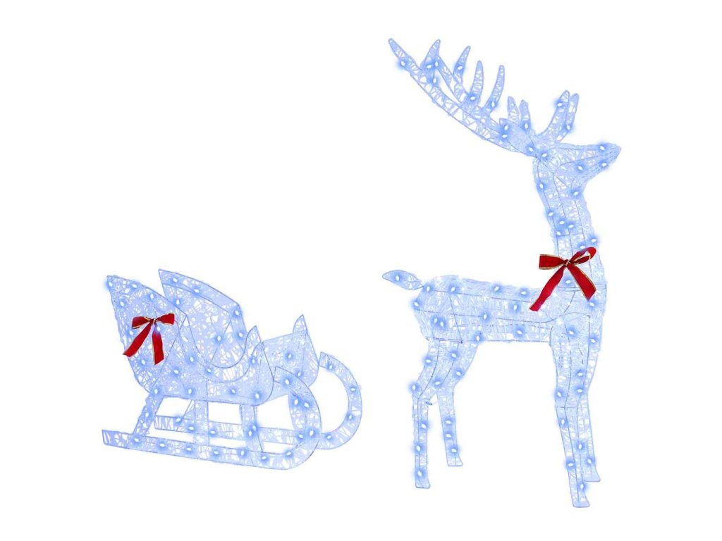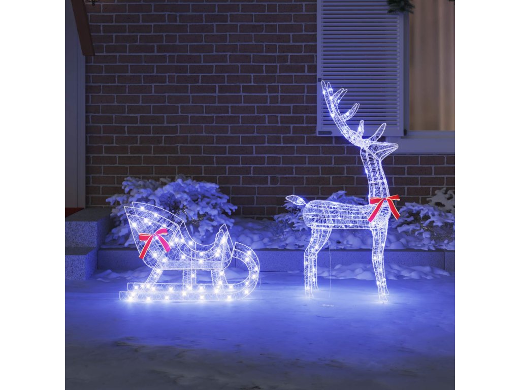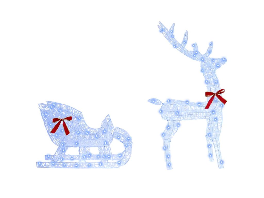 Toto moderní sněžné spřežení sobů přináší vánoční kouzlo do vašeho domova. Je vyrobené z odolného akrylu a má minimalistický design obohacený o klasickou červenou mašli pro sváteční atmosféru. Vhodné pro vnitřní a kryté venkovní prostory, je ideálním doplňkem pro jakýkoli vánoční motiv a spojuje moderní jednoduchost s tradiční elegancí. Představte si, jak tento kousek rozjasňuje vaše rodinné setkání svým nádherným vzhledem a vytváří atmosféru klidu i radosti ve vašem obývacím pokoji.