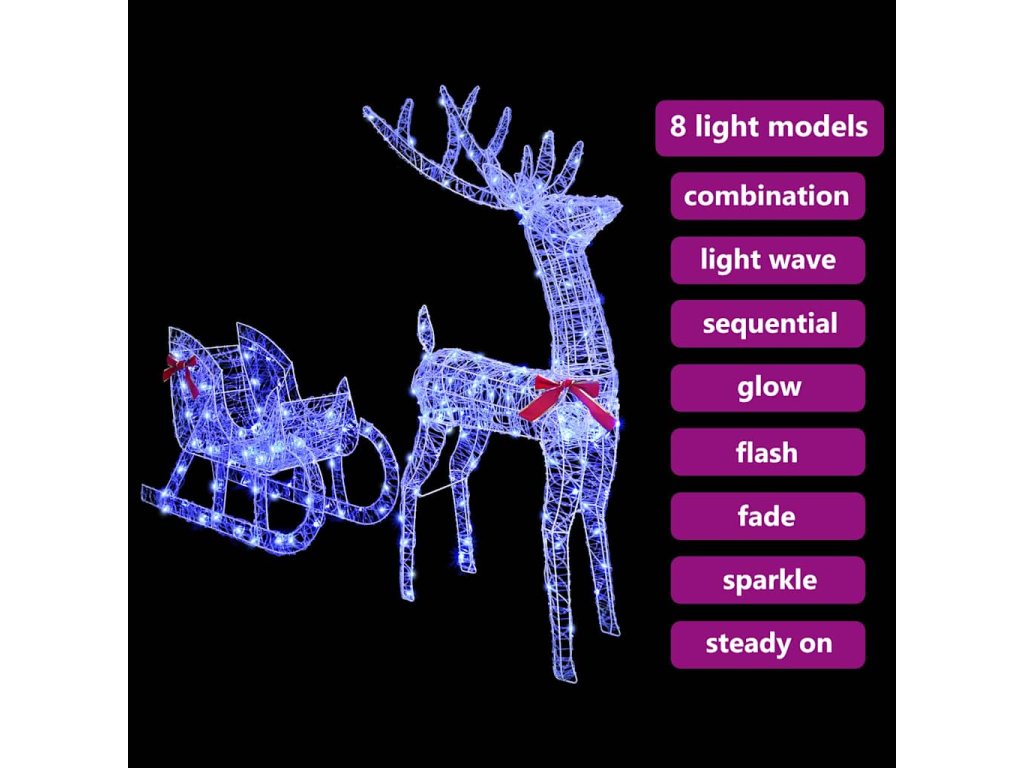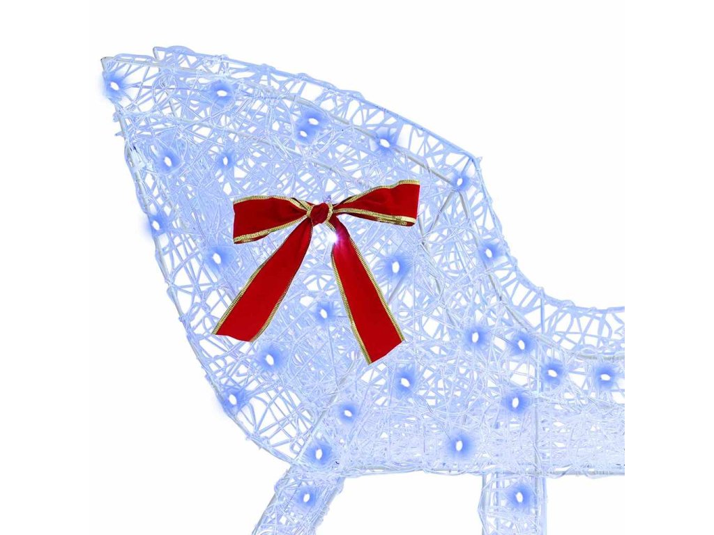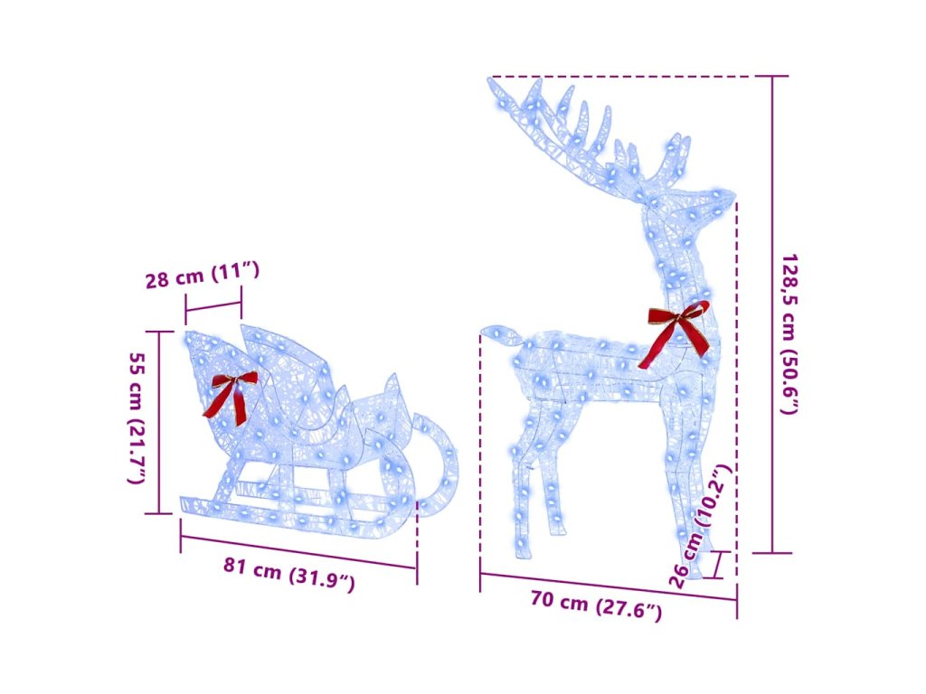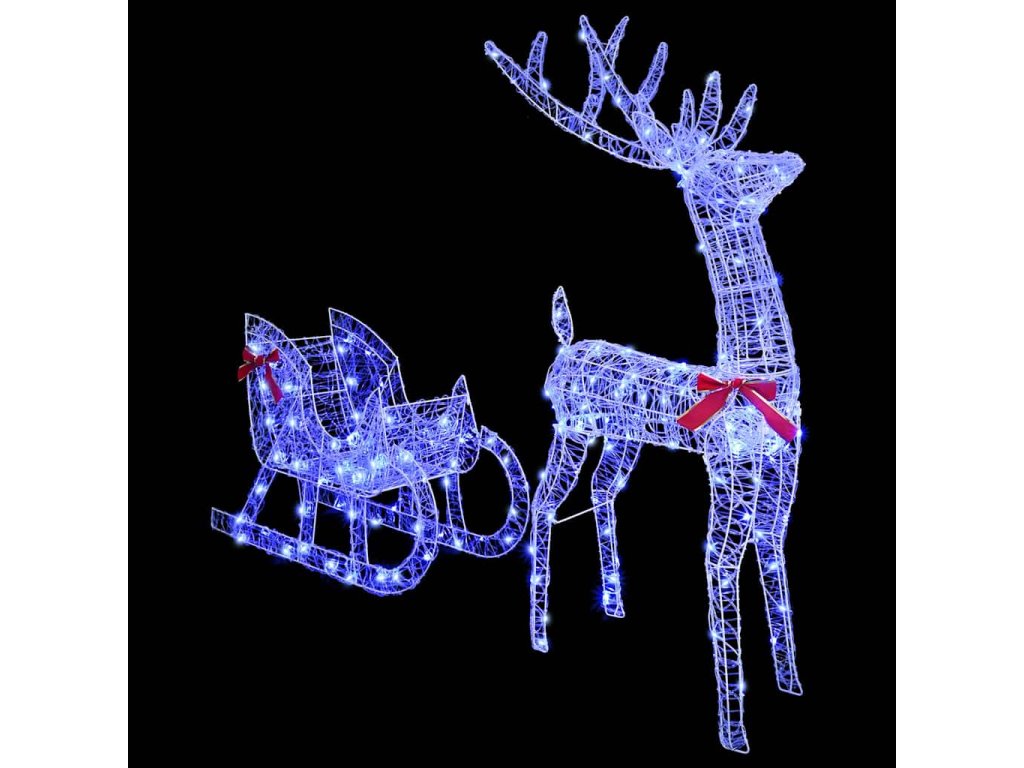 Toto moderní sněžné spřežení sobů přináší vánoční kouzlo do vašeho domova. Je vyrobené z odolného akrylu a má minimalistický design obohacený o klasickou červenou mašli pro sváteční atmosféru. Vhodné pro vnitřní a kryté venkovní prostory, je ideálním doplňkem pro jakýkoli vánoční motiv a spojuje moderní jednoduchost s tradiční elegancí. Představte si, jak tento kousek rozjasňuje vaše rodinné setkání svým nádherným vzhledem a vytváří atmosféru klidu i radosti ve vašem obývacím pokoji.