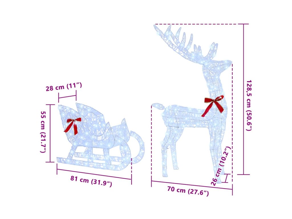 Sáně tažené sobem Studená bílá 70 x 26 x 128,5 cm Akryl 42019076