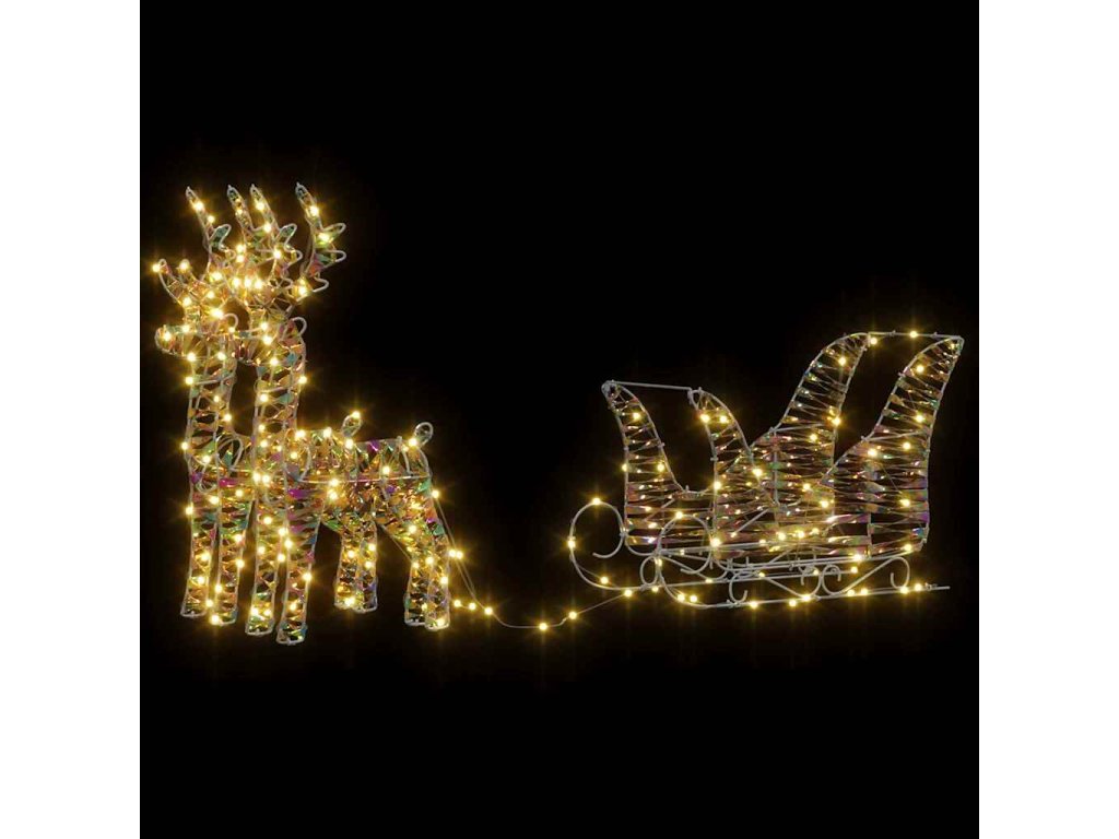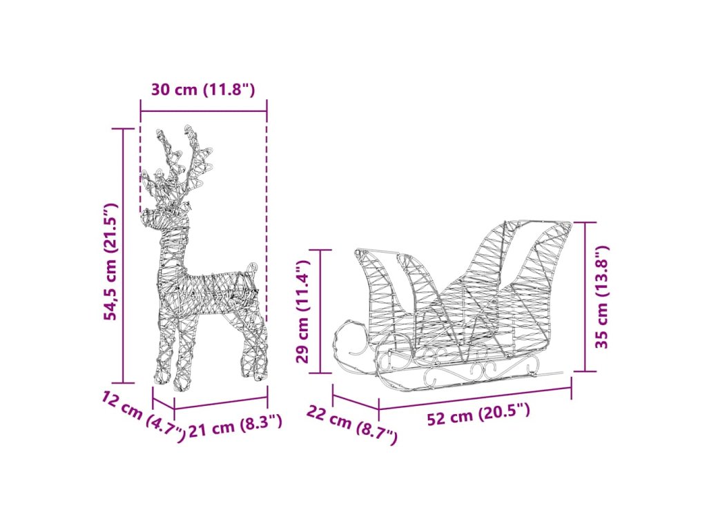 Toto vánoční dekorativní sobí saně je perfektním doplňkem každé sváteční výzdoby. Zosobňuje moderní eleganci s čistými liniemi a minimalistickým stylem. Vyrobené z kvalitních materiálů, vypadá skvěle a skvěle se hodí do obýváku nebo na terasu. Teplé bílé tóny dodávají kouzelný nádech do vaší sezónní dekorace. Jeho velká velikost ho dělá výjimečným prvkem, který se ale stále vejde do různých prostor uvnitř nebo venku, spojující tradiční symboliku sobů s moderním stylem.