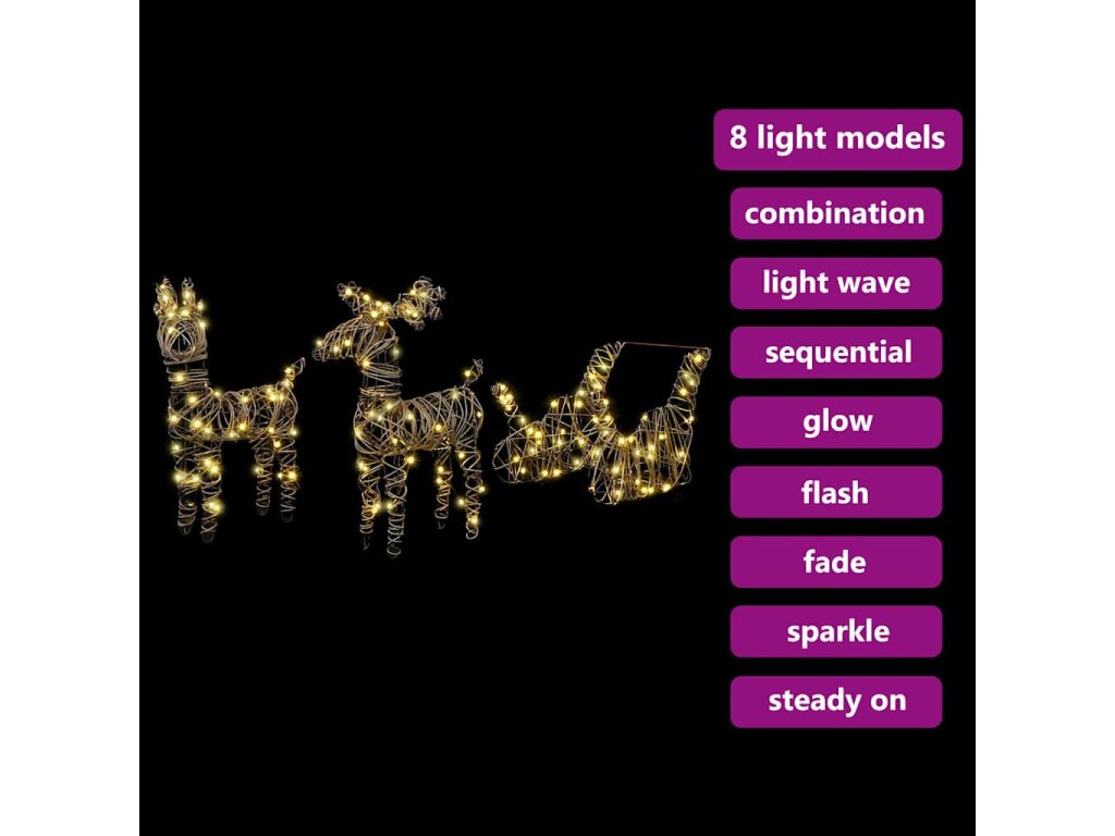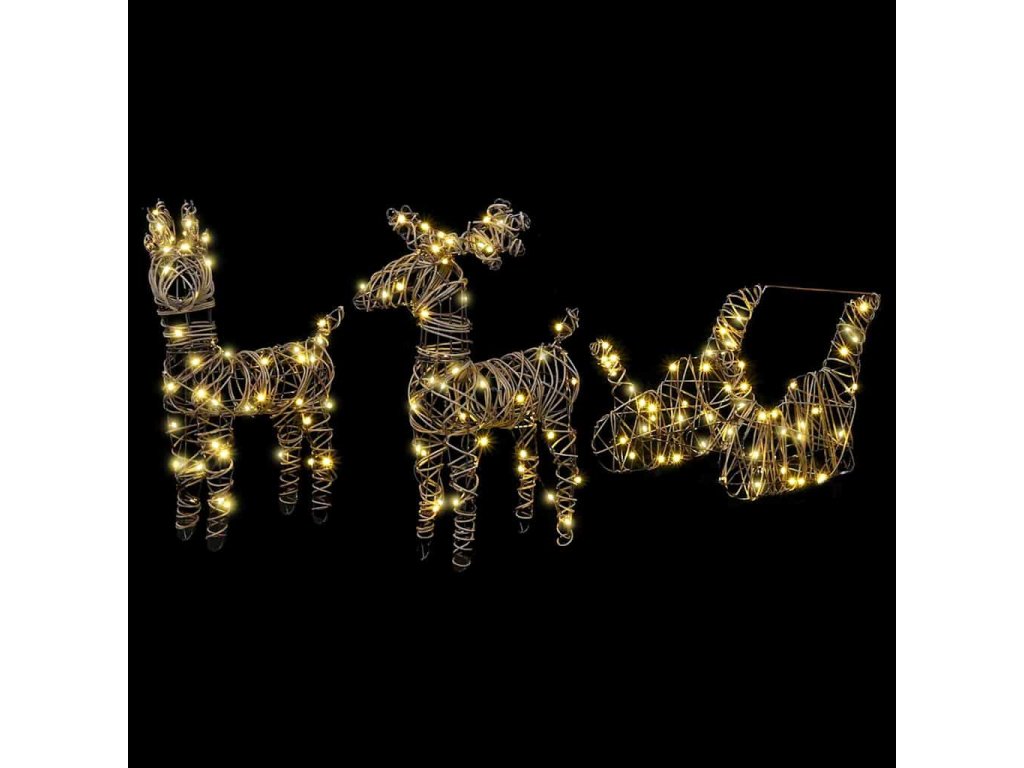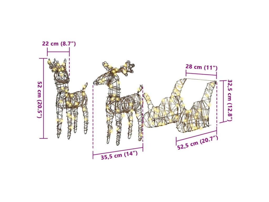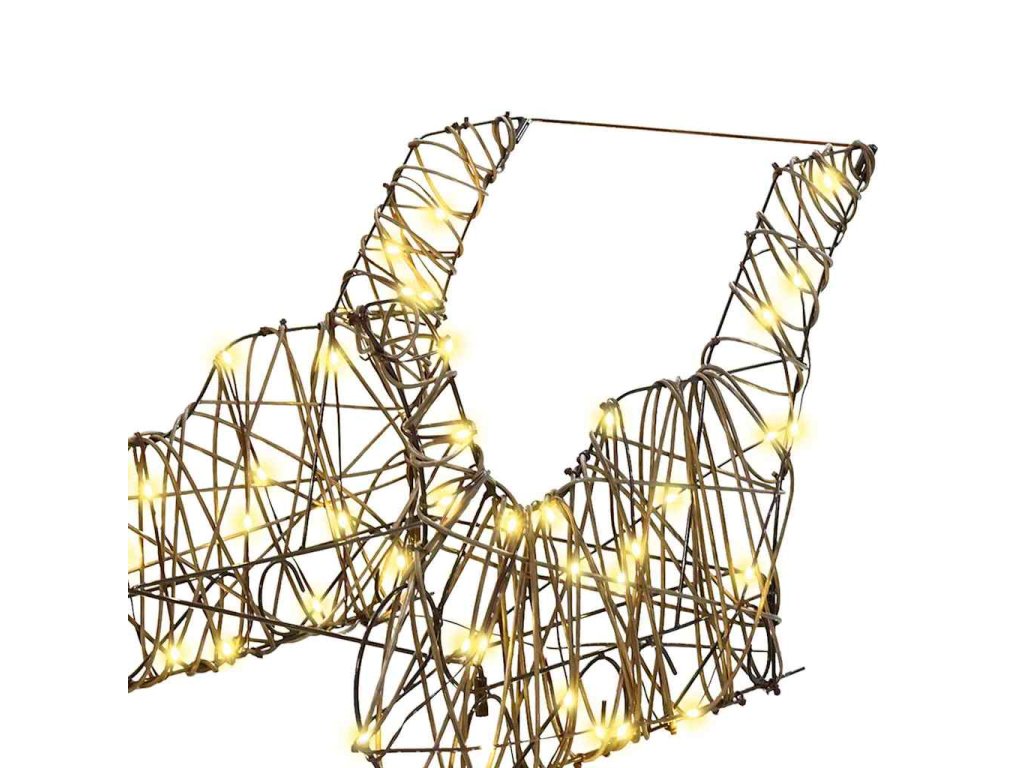 Toto vánoční dekorativní sobí saně je perfektním doplňkem každé sváteční výzdoby. Zosobňuje moderní eleganci s čistými liniemi a minimalistickým stylem. Vyrobené z kvalitních materiálů, vypadá skvěle a skvěle se hodí do obýváku nebo na terasu. Teplé bílé tóny dodávají kouzelný nádech do vaší sezónní dekorace. Jeho velká velikost ho dělá výjimečným prvkem, který se ale stále vejde do různých prostor uvnitř nebo venku, spojující tradiční symboliku sobů s moderním stylem.