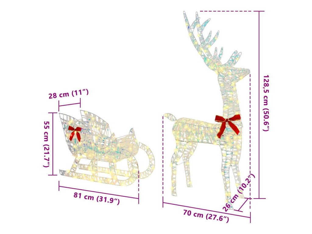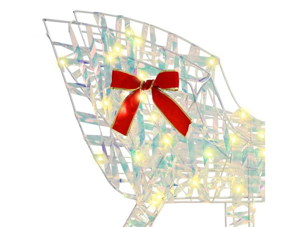 Toto sobí spřežení je perfektní doplněk pro každé sváteční prostředí, spojuje moderní vzhled s tradičním vánočním šarmem. Je to kousek pro ty, kdo mají rádi vánoční atmosféru - dodá charakter a teplo každému prostoru, ať už je to obývák, chodba nebo zahrada. Malebný sob táhnoucí sáně vystihuje radost a kouzlo svátečního období. Ozdobené teplými bílými LED světly, tato dekorace vydává klidný lesk a skvěle se hodí jak do interiérů, tak venku. Přináší sofistikovanost a sváteční eleganci. Navržena tak, aby ladila s různými vánočními tématy, její moderní styl ctí tradiční sváteční hodnoty a zároveň dodává moderní nádech.