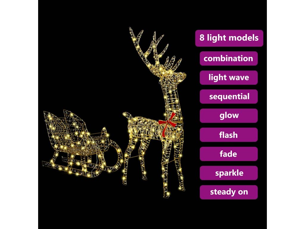 - Teplý LED svit: S energeticky šetrnými LED světly, které svítí příjemně, tyhle saně vytváří nádhernou atmosféru. Nabízejí 8 režimů blikání, takže si můžete přizpůsobit náladu. Od stálého svícení po blikající efekty, dodávají kouzlo i třpyt do každého prostoru.