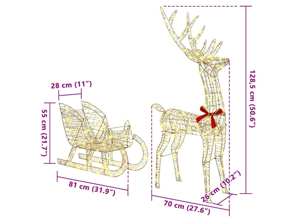 Tyhle moderní sobí saně jsou skvělým doplňkem vaší vánoční výzdoby. Umí okouzlit a přinést radost Vánoc do každého prostoru. Jednoduchý a elegantní design ztělesňuje současný styl a vyzývá sváteční atmosféru. Teplá bílá LED světla přetvářejí interiéry i chráněné venkovní prostory na zimní říši divů, ideální pro vánoční setkání. Nádherně zpracované figurky sobů táhnoucí saně dodávají kouzlo během svátečního období.