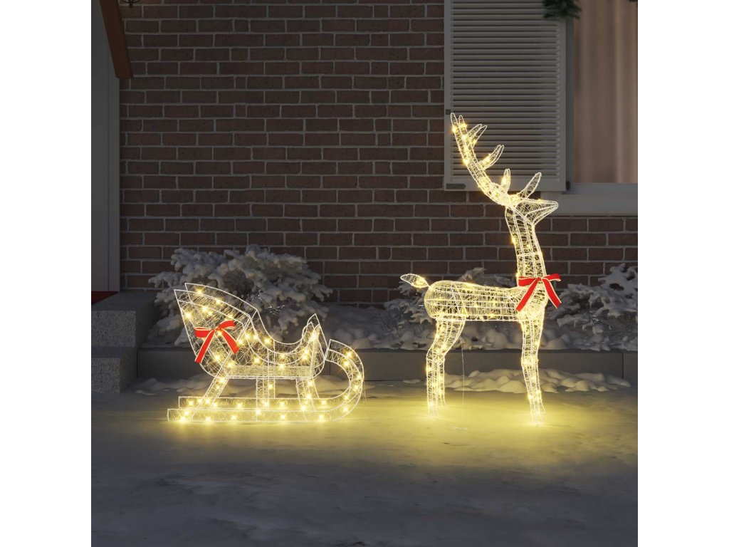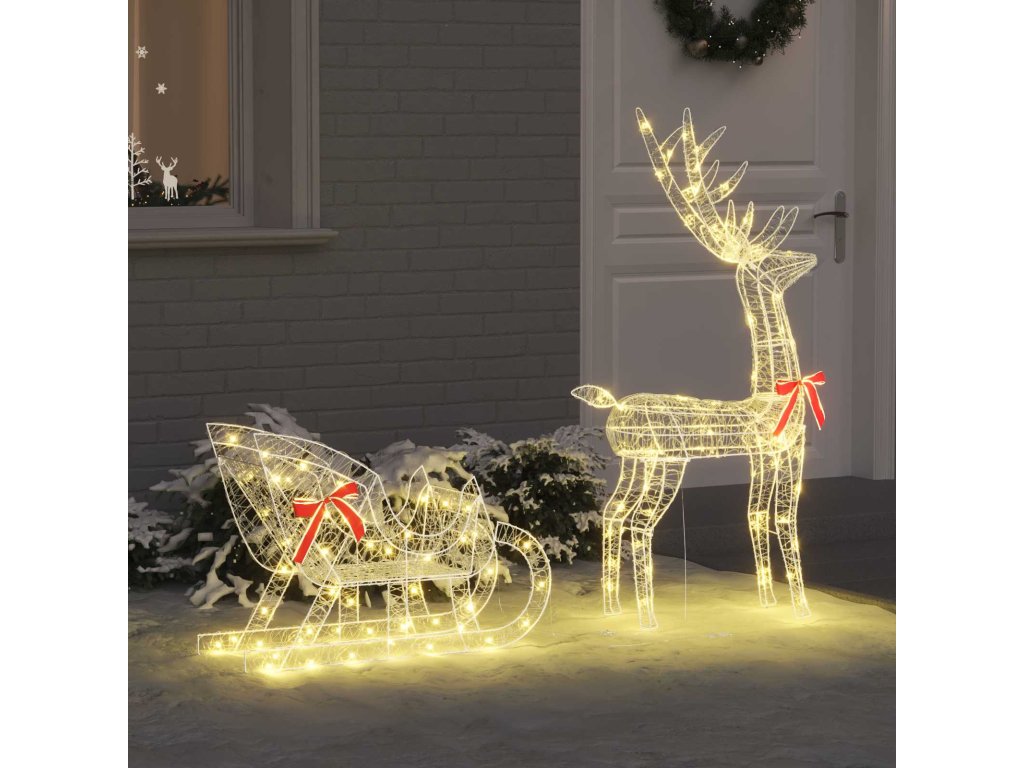 Toto moderní sněžné spřežení sobů přináší vánoční kouzlo do vašeho domova. Je vyrobené z odolného akrylu a má minimalistický design obohacený o klasickou červenou mašli pro sváteční atmosféru. Vhodné pro vnitřní a kryté venkovní prostory, je ideálním doplňkem pro jakýkoli vánoční motiv a spojuje moderní jednoduchost s tradiční elegancí. Představte si, jak tento kousek rozjasňuje vaše rodinné setkání svým nádherným vzhledem a vytváří atmosféru klidu i radosti ve vašem obývacím pokoji.