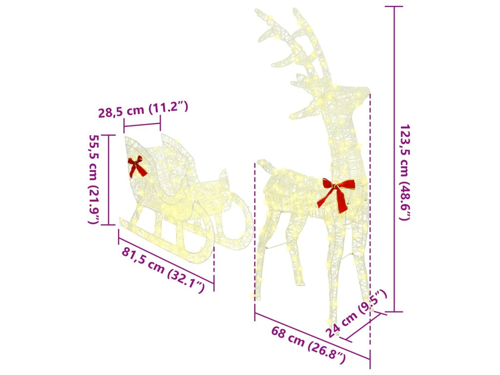 Sáně tažené sobem Teplá bílá 70 x 26 x 130 cm Akryl 42019075