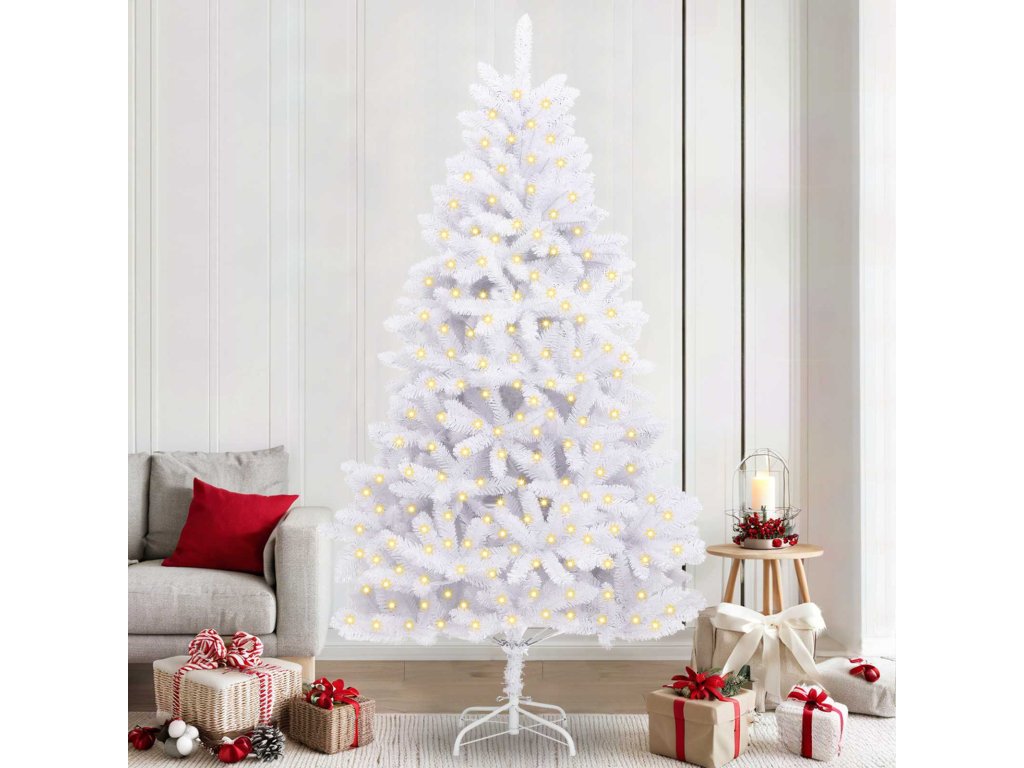 Umělý vánoční stromeček s 300 LED diodami Bílá 240 cm PVC a kov 3210117
