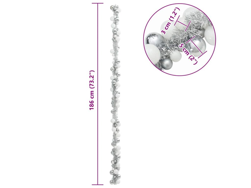 Vánoční koule girlanda Bílá a stříbrná 186 cm Polystyren 42019696
