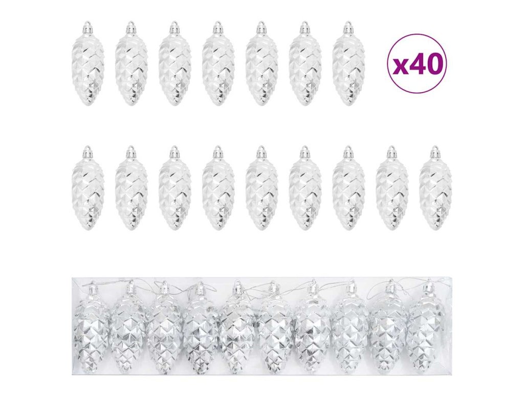 Vánoční koule z borových šišek 40 pcs Stříbrná Plast 42018891
