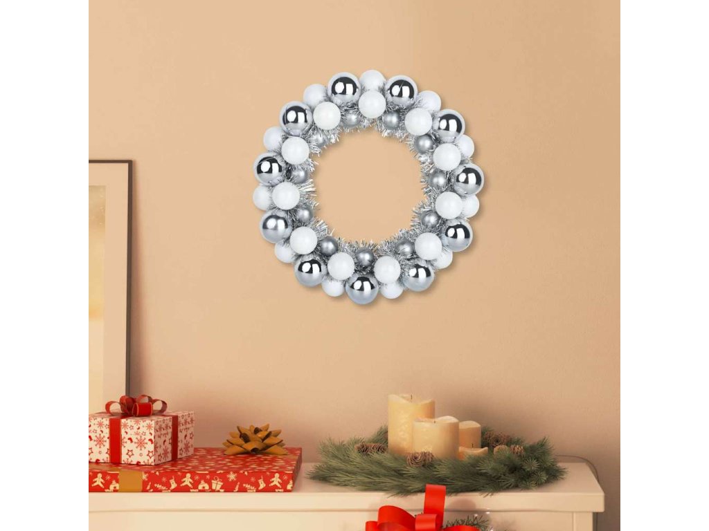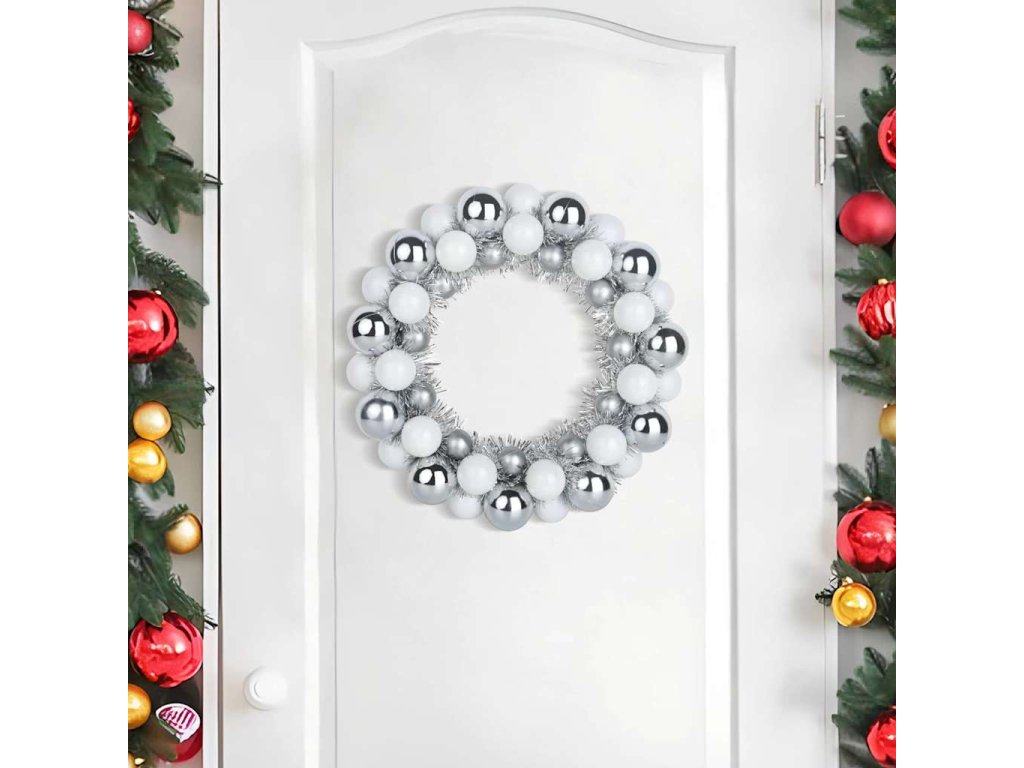 Vánoční koulové věnce 2 pcs Bílá a stříbrná 33 x 33 x 7 cm 42019685